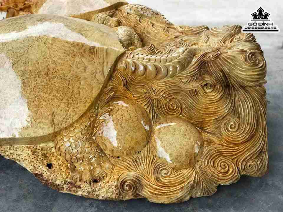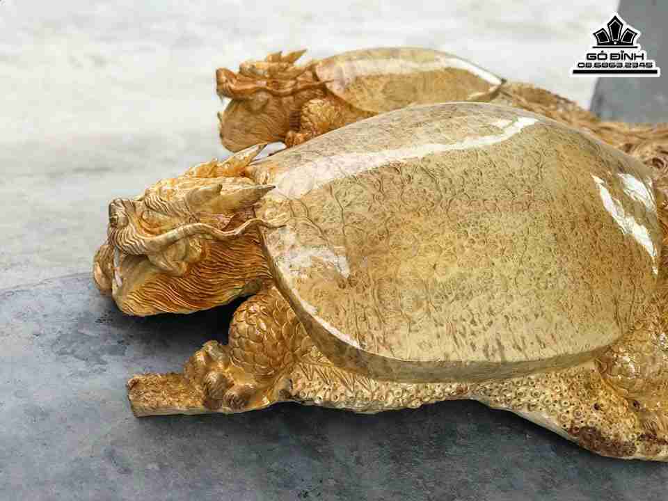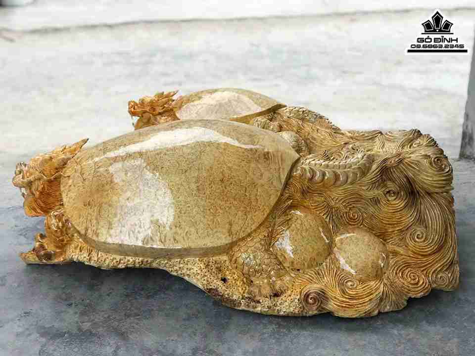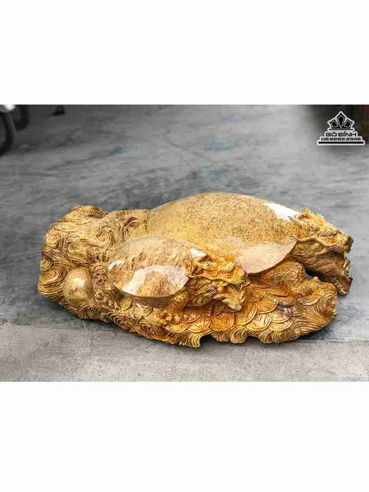 Tượng Long Quy Mẫu Tử Gỗ Nu Kháo Cao 36 Ngang 100 Sâu 70 (cm)