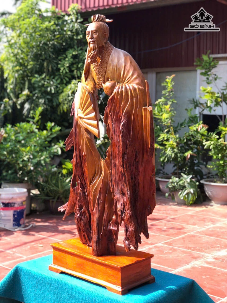 Tượng Lục Vũ Thần Trà Gỗ Dổi Cao 130 Ngang 68 Sâu 23 (cm)