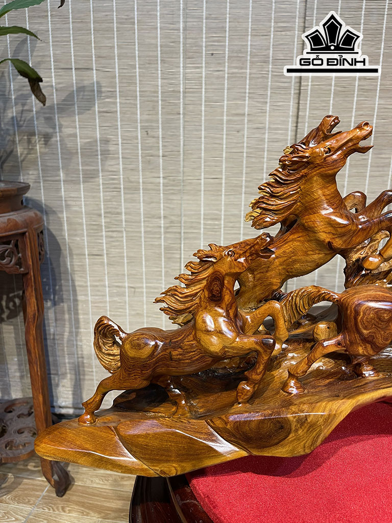 Tượng Mã Đáo Thành Công Gỗ Hương Cao 36 Ngang 70 Sâu 25 (cm)