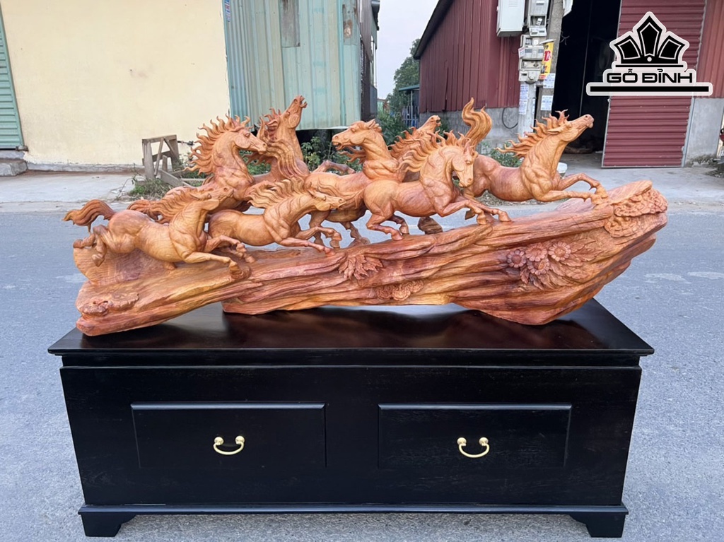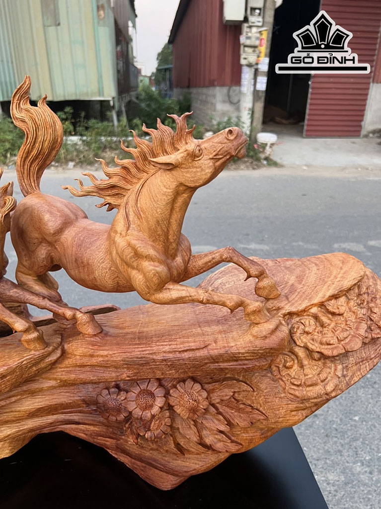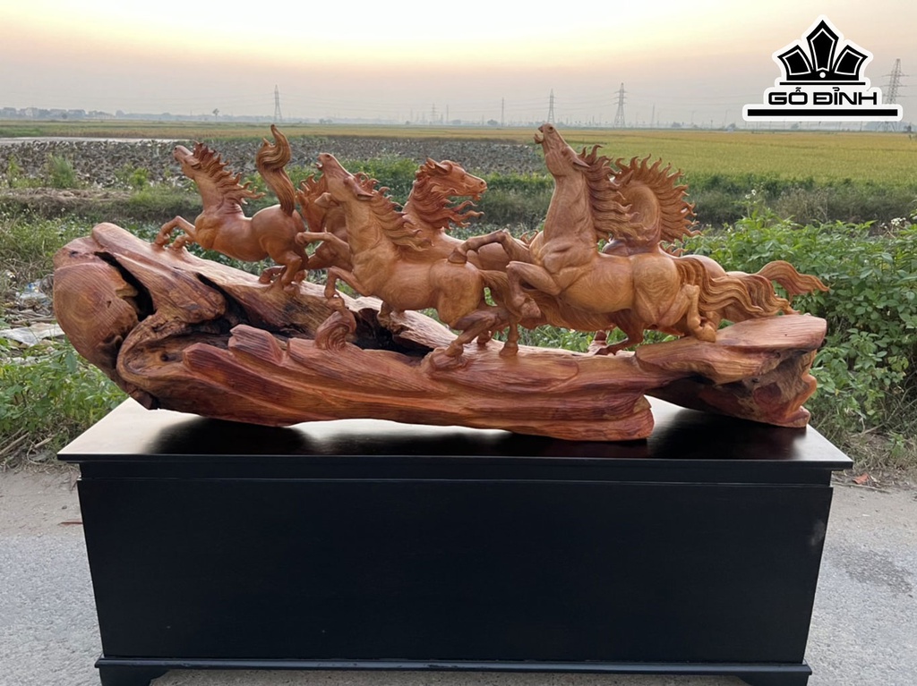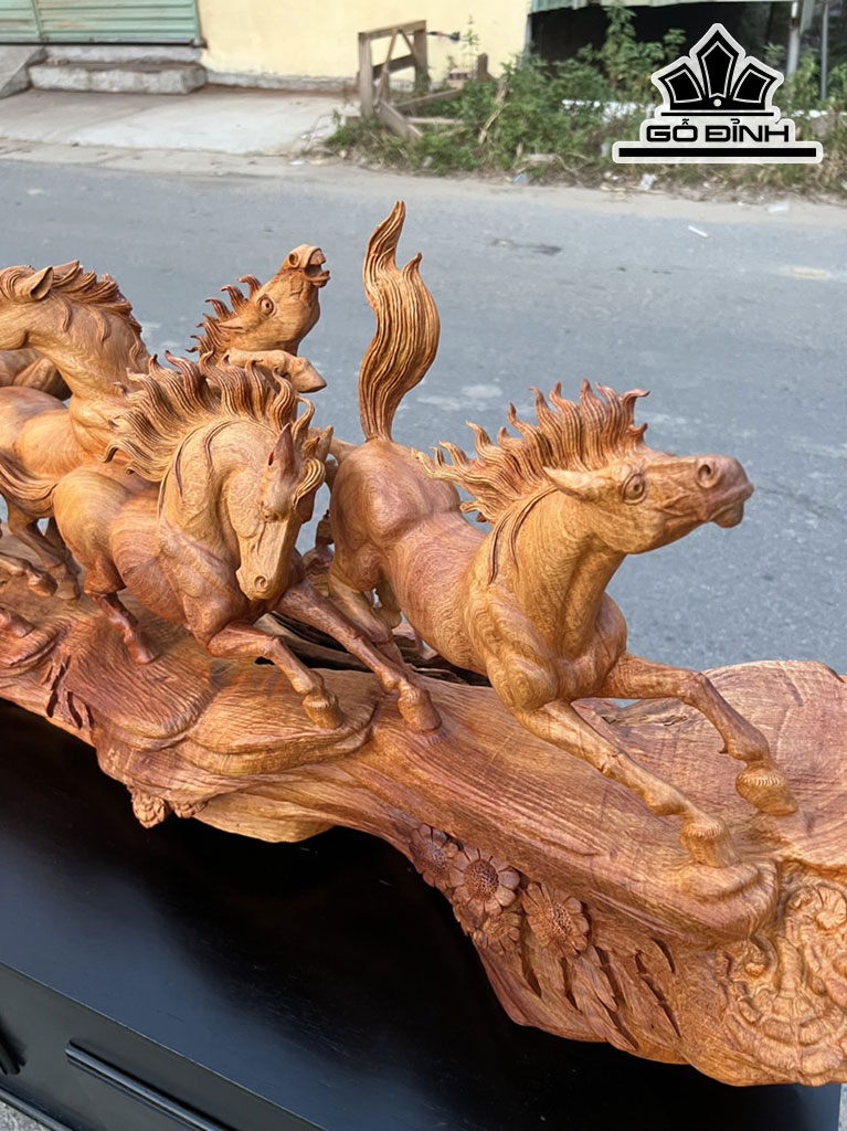 Tượng Mã Đáo Thành Công Gỗ Hương Cao 55 Ngang 139 Sâu 33 (cm)