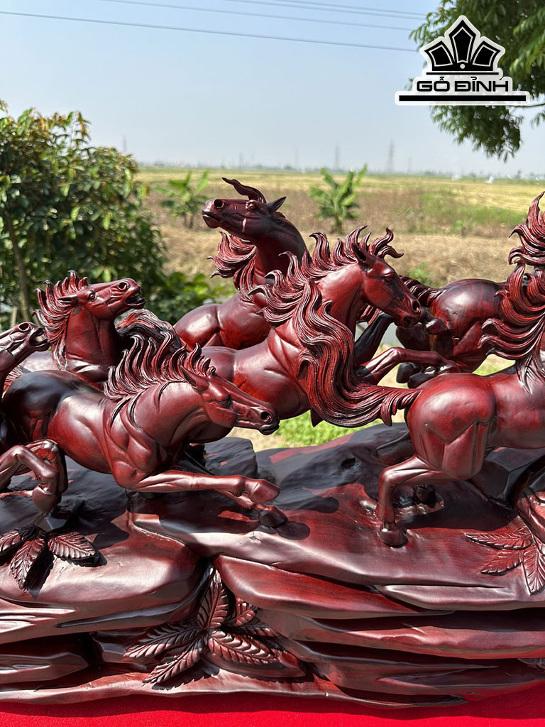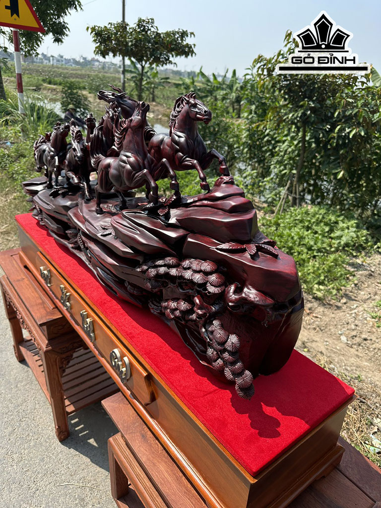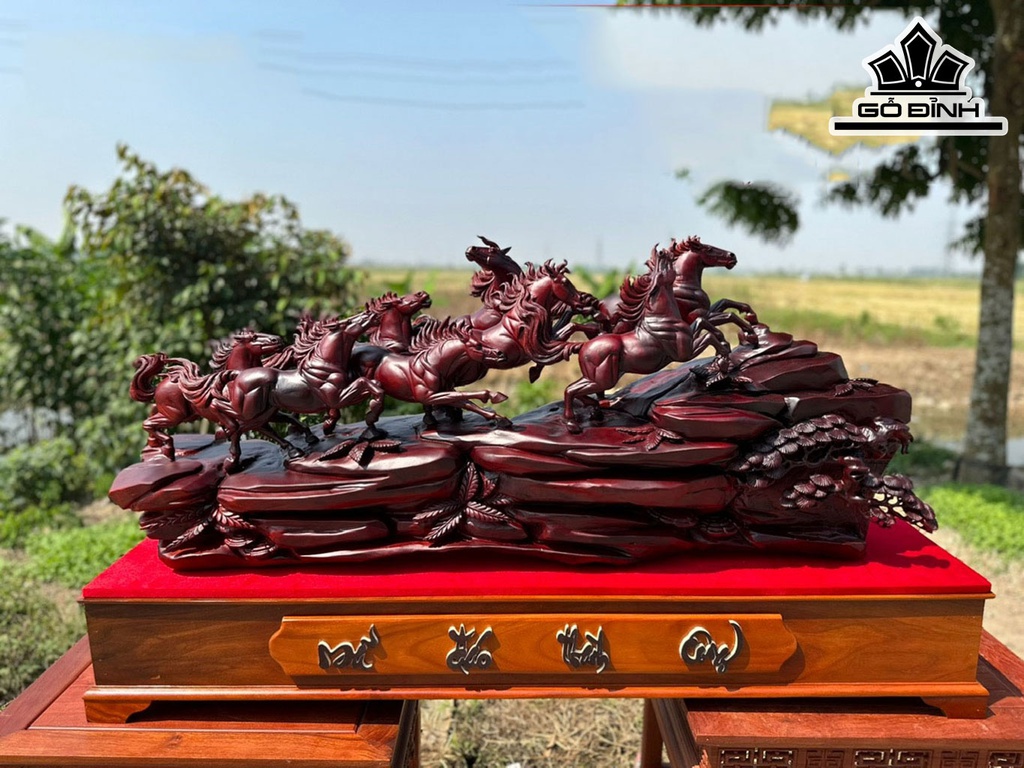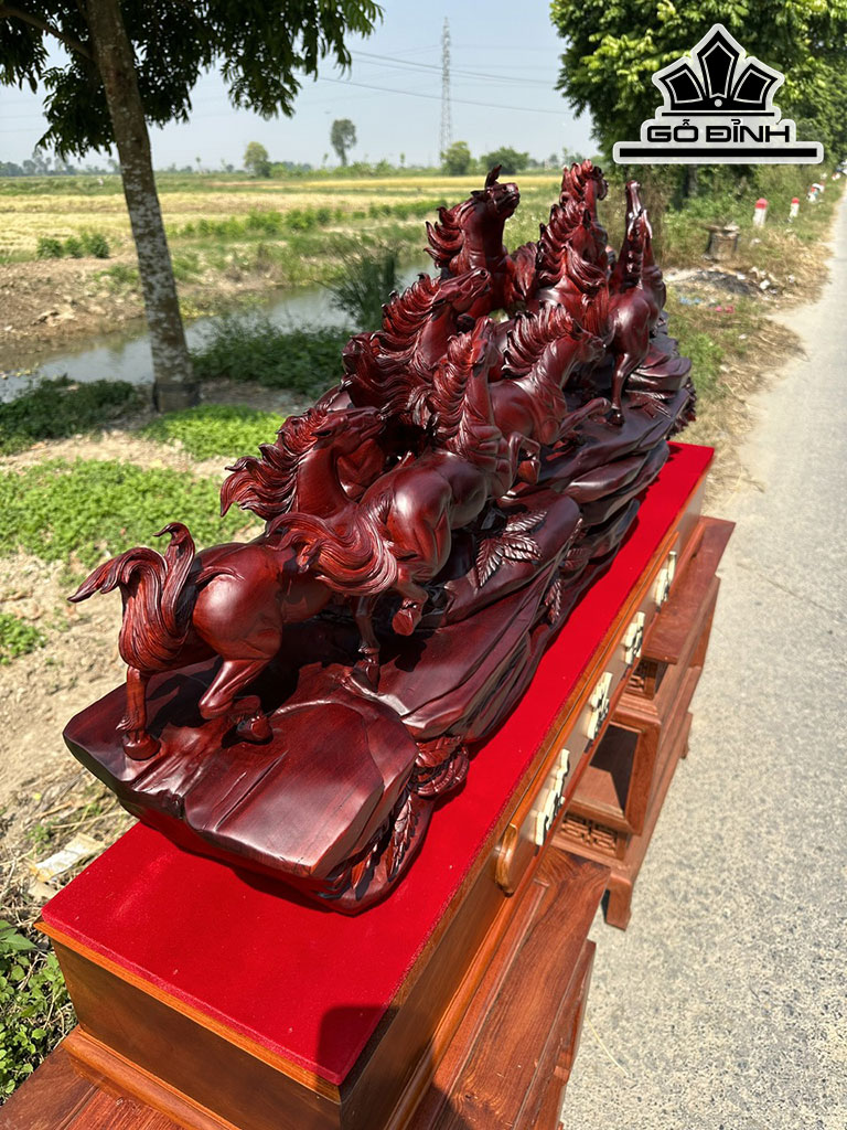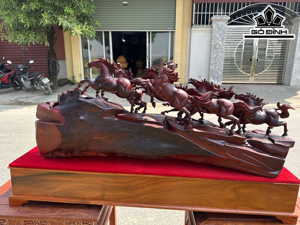 Tượng Mã Đáo Thành Công Gỗ Vương Mộc Tử Đàn Cao Cả Kỷ 71 Dài Cả Kỷ 132 Sâu 27 (cm)