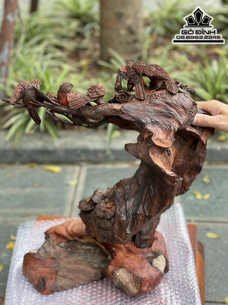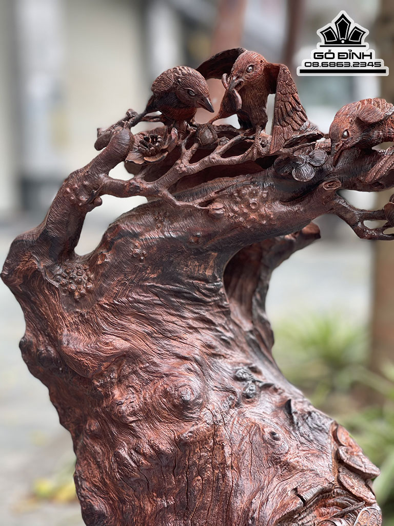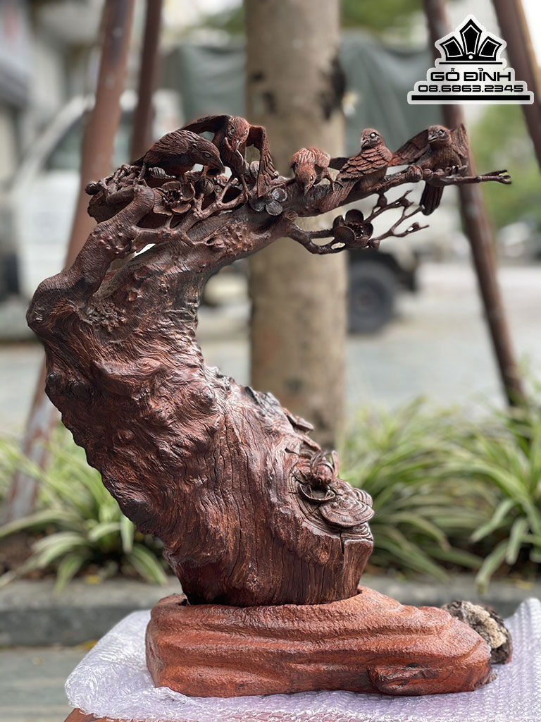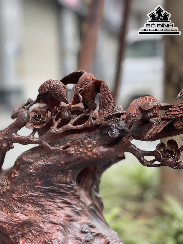Tượng Mai Điểu Uyên Ương Gỗ Trắc Nguyên Khối