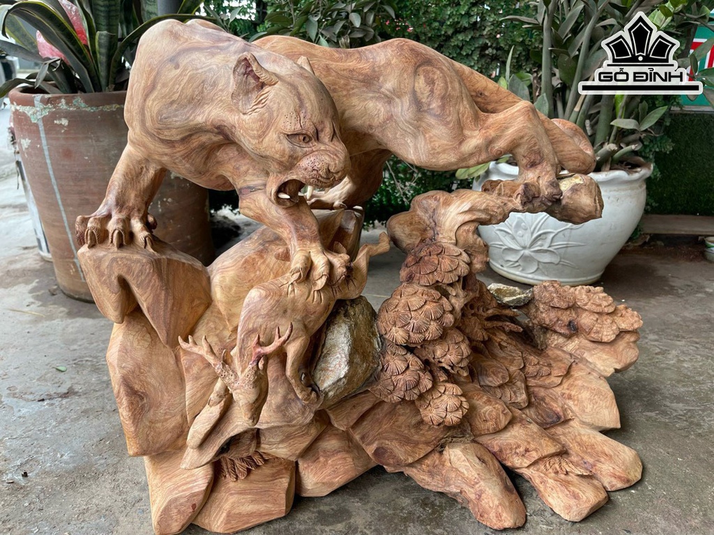 Tượng Mảnh Chúa Rừng Xanh Gỗ Hương Cao 54 Ngang 70 Sâu 40 (cm)
