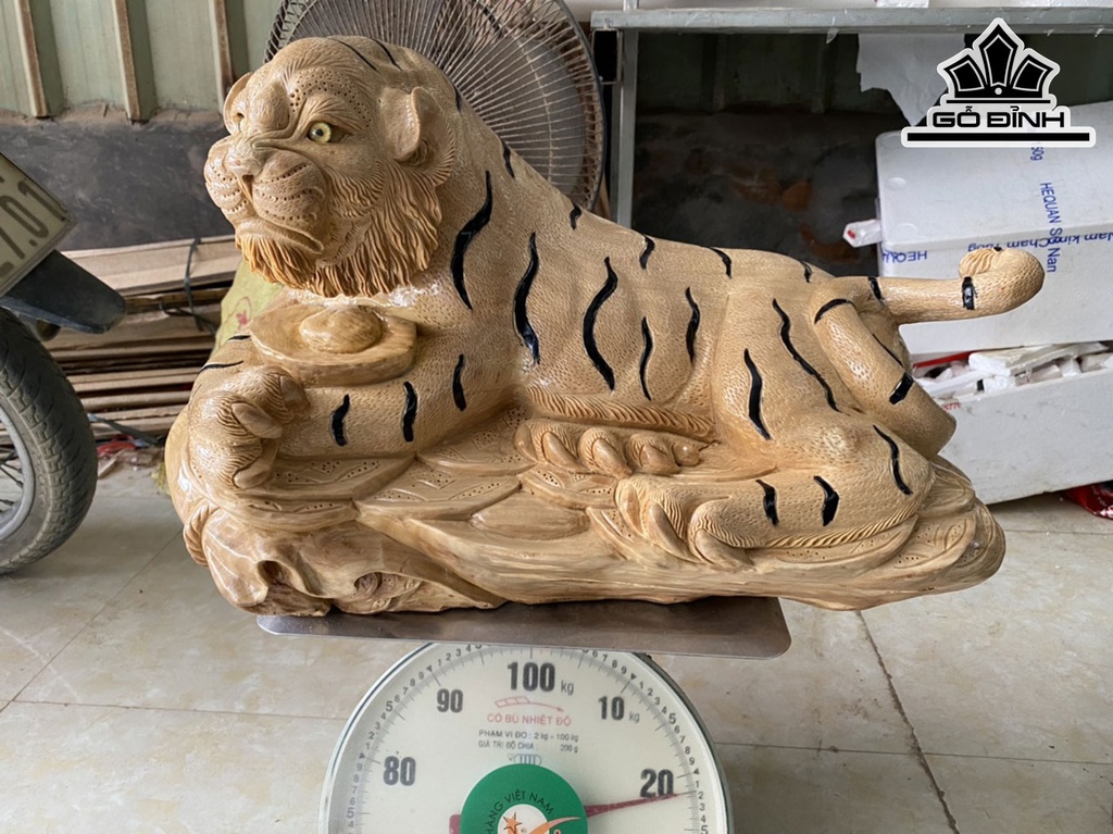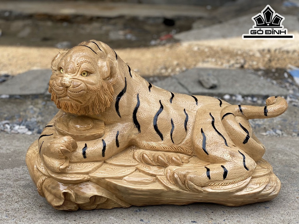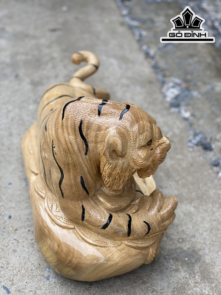 Tượng Mãnh Hổ Gỗ Nu Ngọc Nghiến Cao 32 Ngang 55 Sâu 28 (cm)