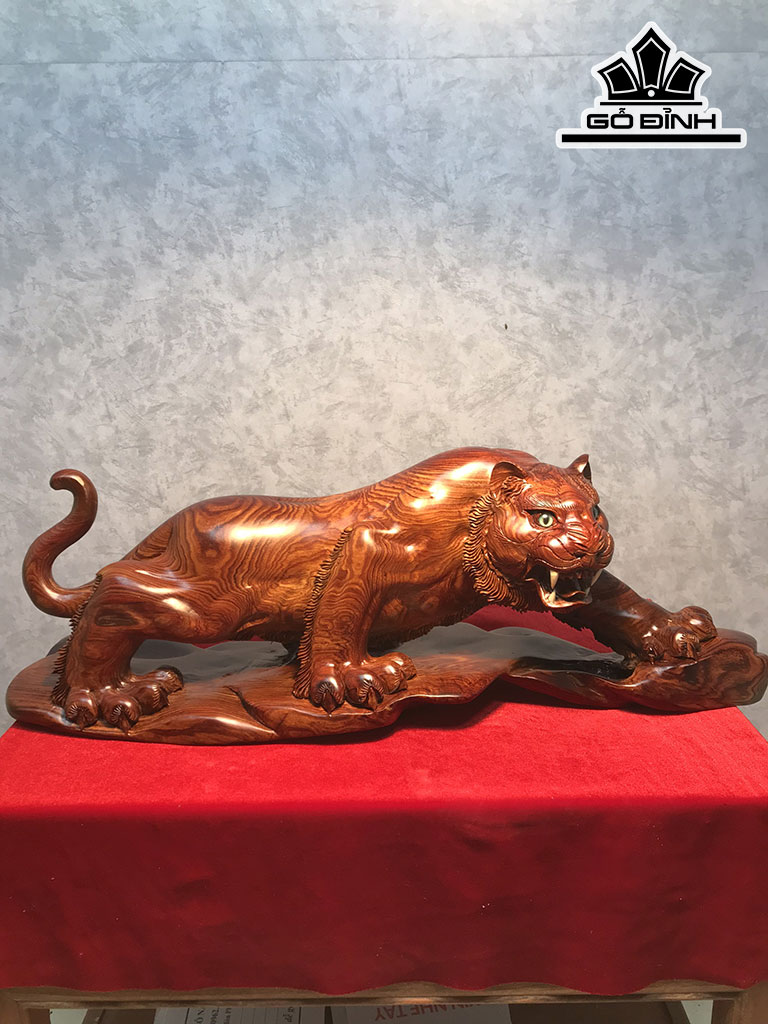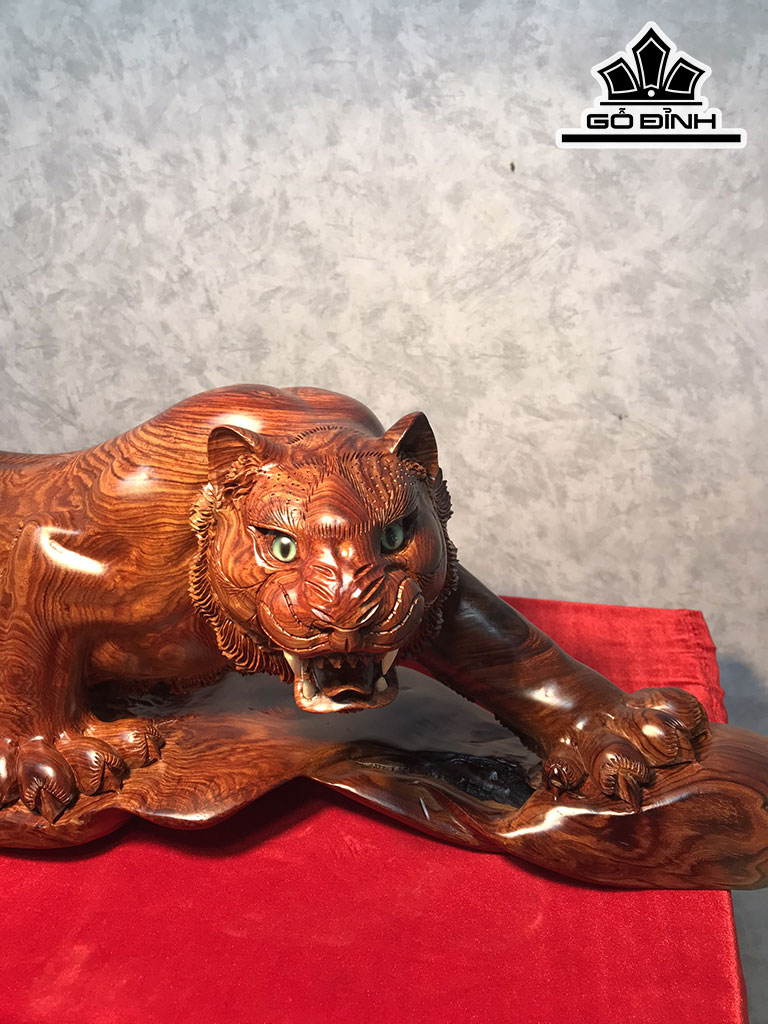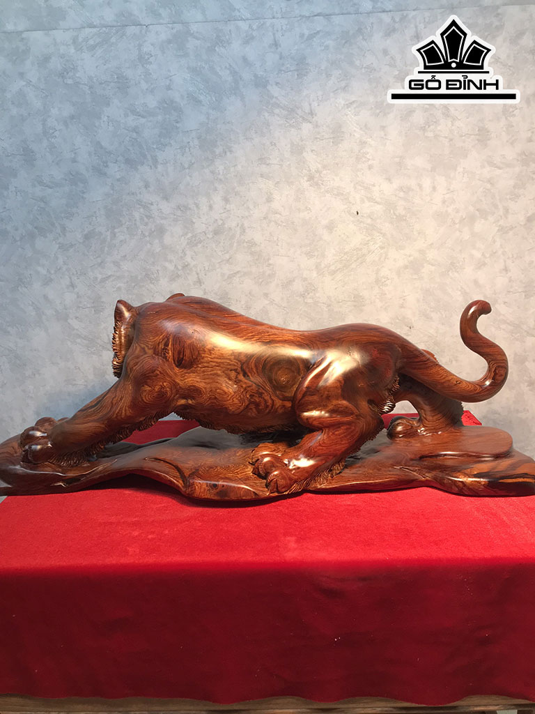 Tượng Mảnh Hổ Rình Mồi Gỗ Cẩm Cao 23 Ngang 65 Sâu 20 (cm)