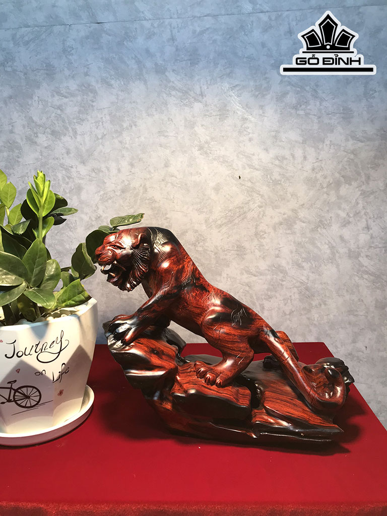Tượng Mảnh Hổ Rình Mồi Gỗ Trắc Cao 25 Ngang 32 Sâu 15 (cm)