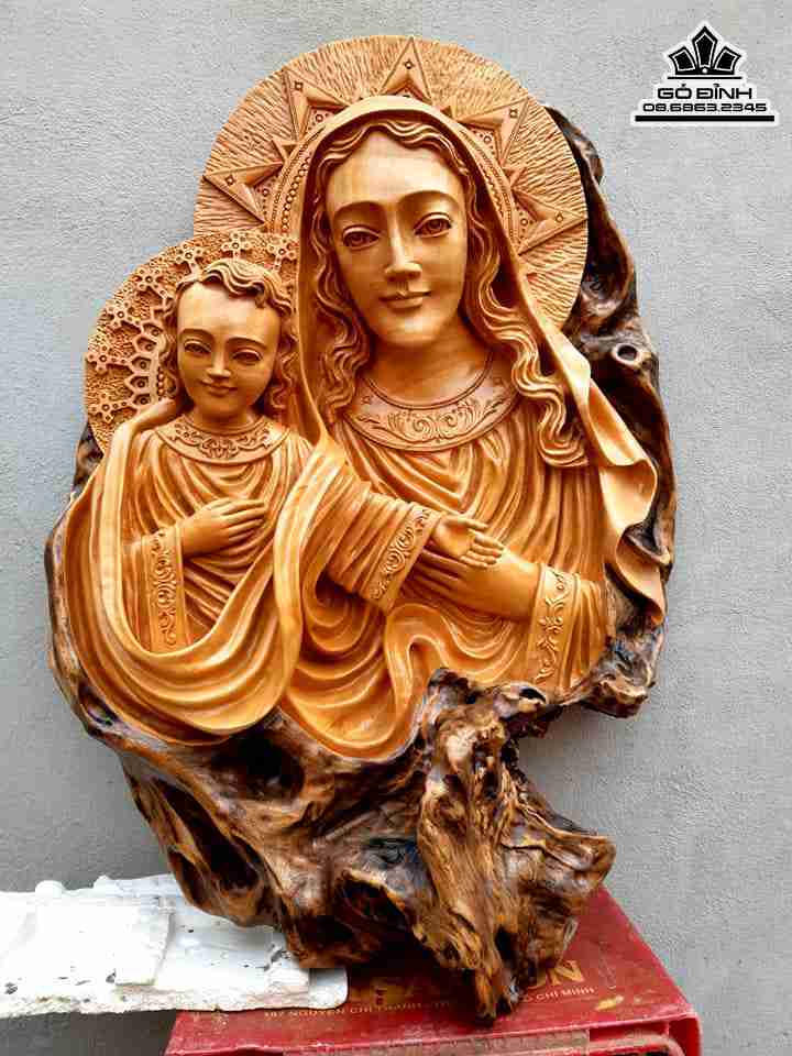 Tượng Mẹ Con Gỗ Trai Cao 80 Rộng 55 Dày 20 (cm)