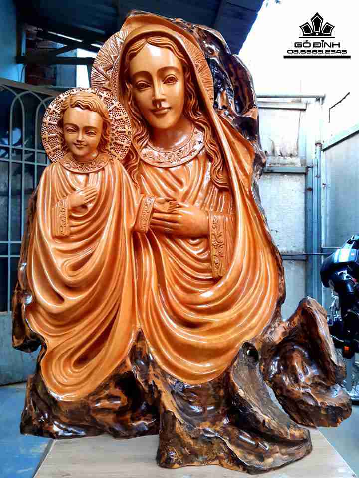 Tượng Mẹ Con Gỗ Trai Cao 90 Rộng 70 Dày 30 (cm)