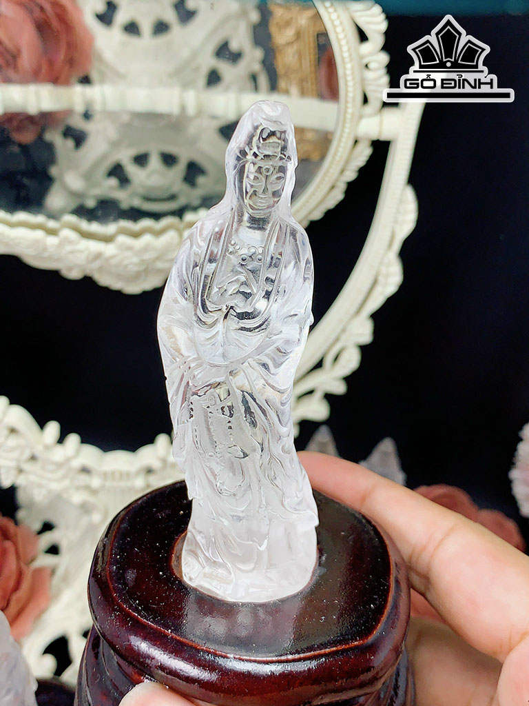 Tượng Mẹ Quan Thế Âm Đá Thạch Anh Trắng Cao 9,5 Ngang 3 (cm)
