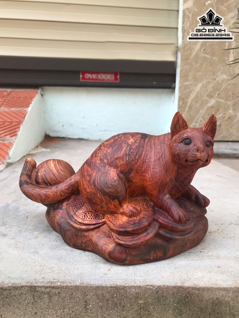 Tượng Mèo Gỗ Cẩm Cao 15 Ngang 26 Sâu 13 (cm)