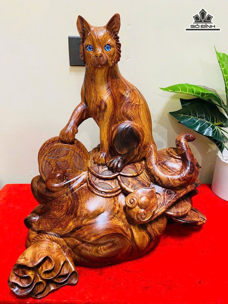 Tượng Mèo Gỗ Cẩm Cao 45 Ngang 48 Sâu 26 (cm)
