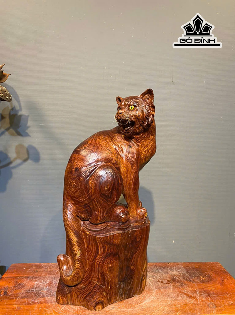 Tượng Mèo Gỗ Cẩm Cao 52 Ngang 25 Sâu 20 (cm)