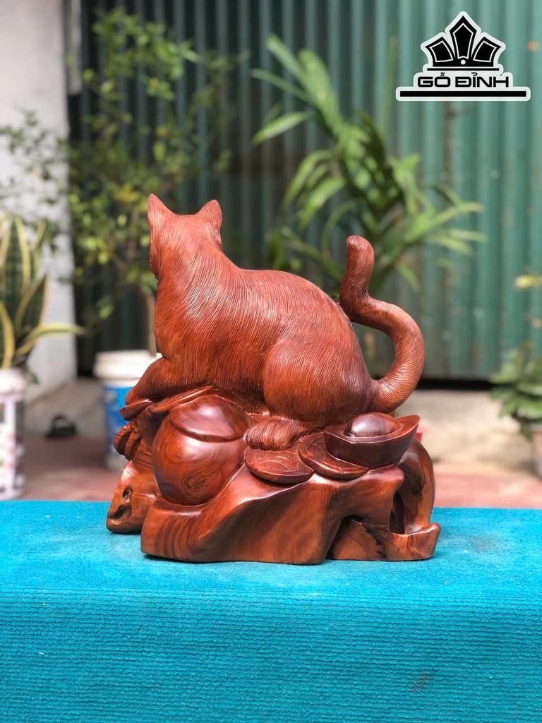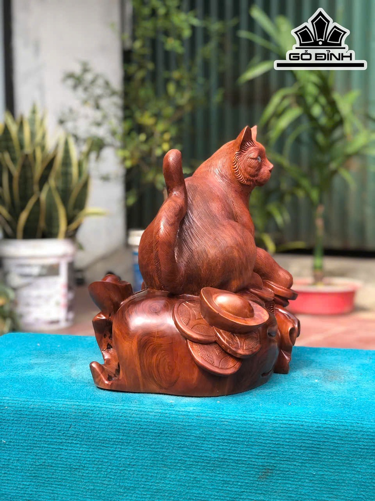 Tượng Mèo Gỗ Hương Cao 40 Ngang 36 Sâu 28 (cm)