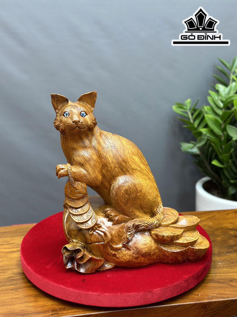 Tượng Mèo Gỗ Hương Cao 41 Ngang 36 Sâu 22 (cm)