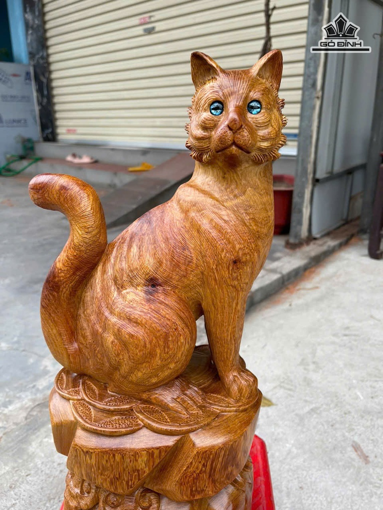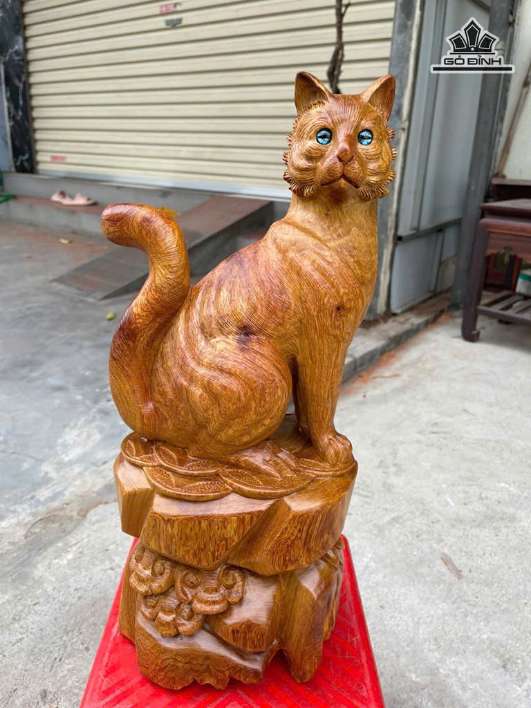 Tượng Mèo Gỗ Hương Cao 45 Ngang 19 Sâu 18 (cm)