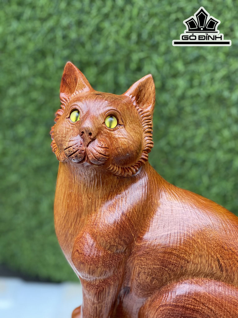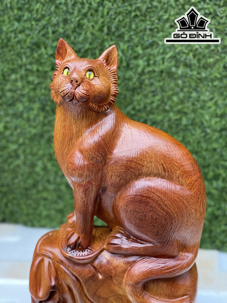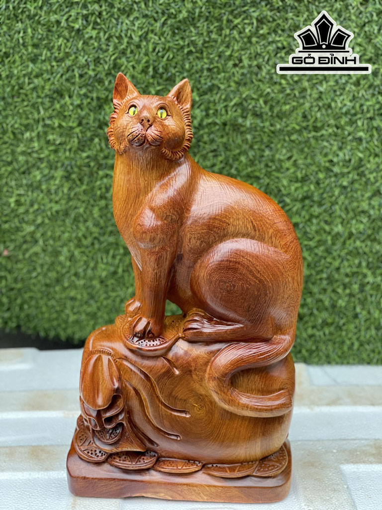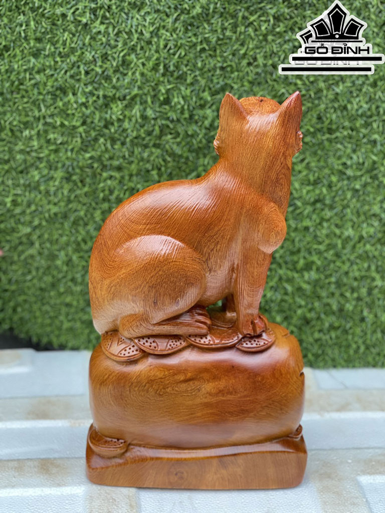 Tượng Mèo Gỗ Hương Cao 45 Ngang 24 Sâu 12 (cm)