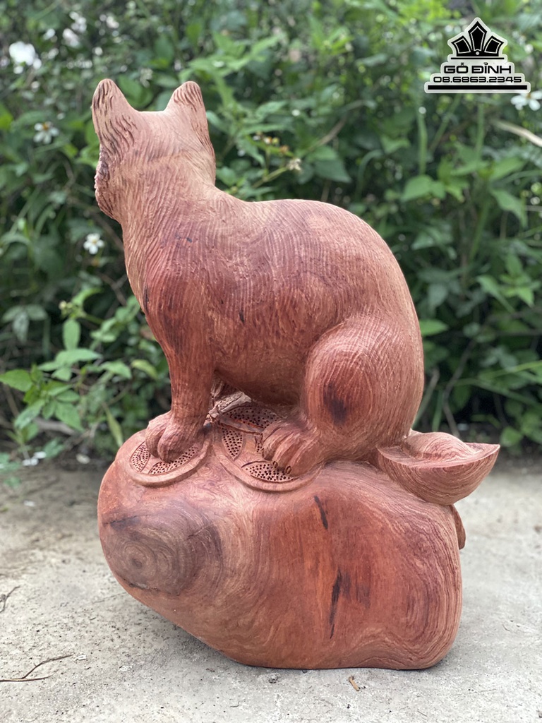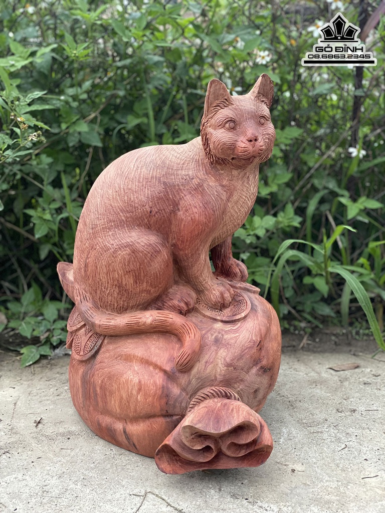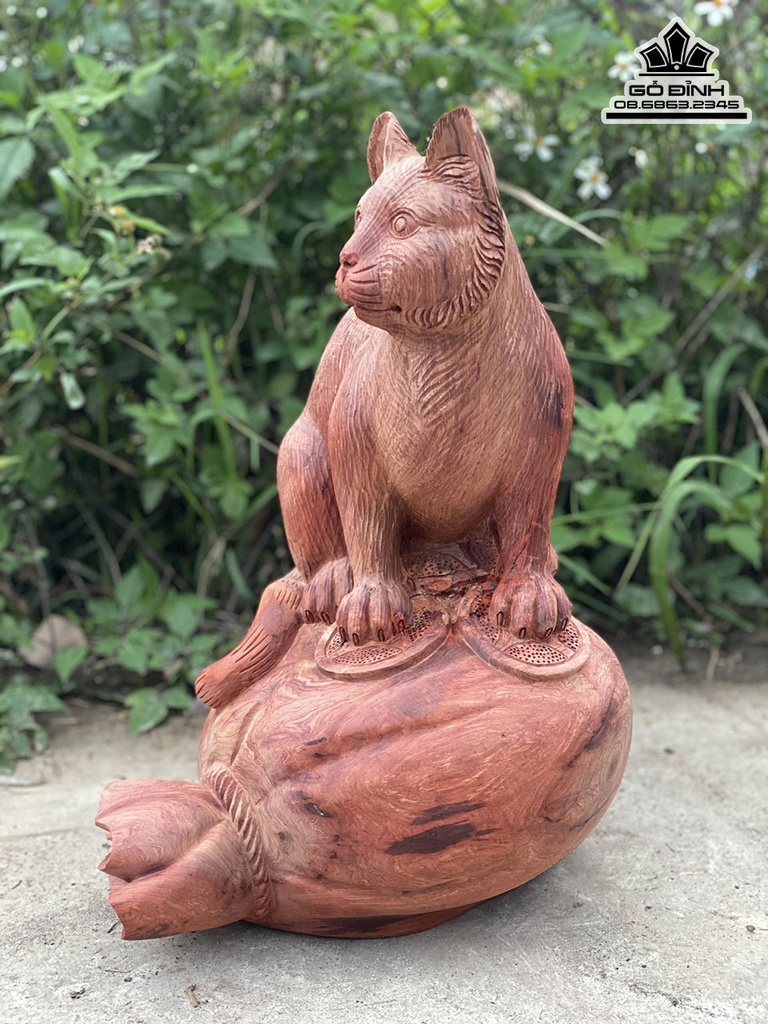 Tượng Mèo Gỗ Hương Cao 45 Ngang 38 Sâu 30 (cm)