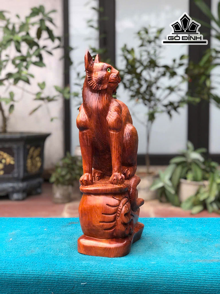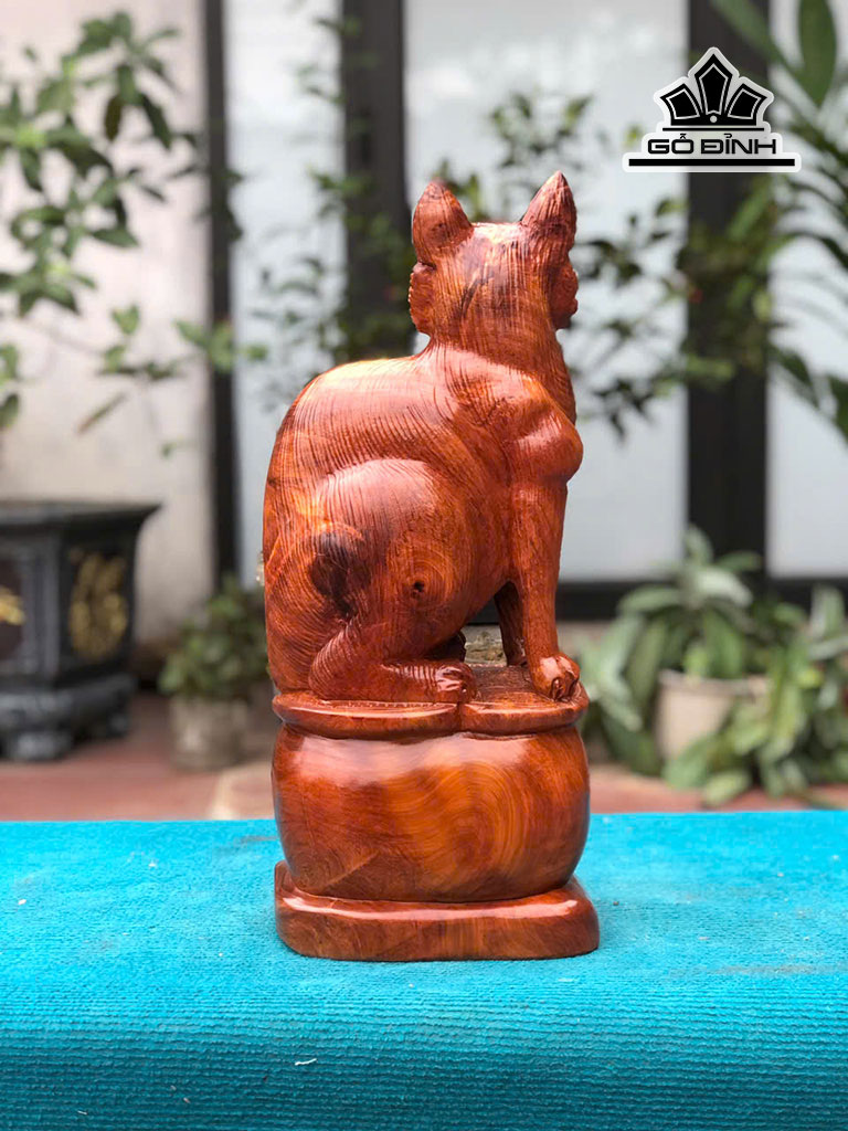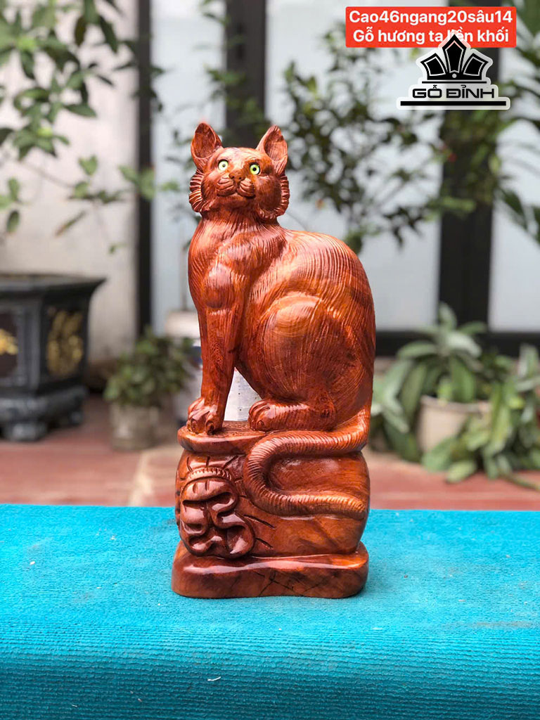 Tượng Mèo Gỗ Hương Cao 46 Ngang 20 Sâu 14 (cm)