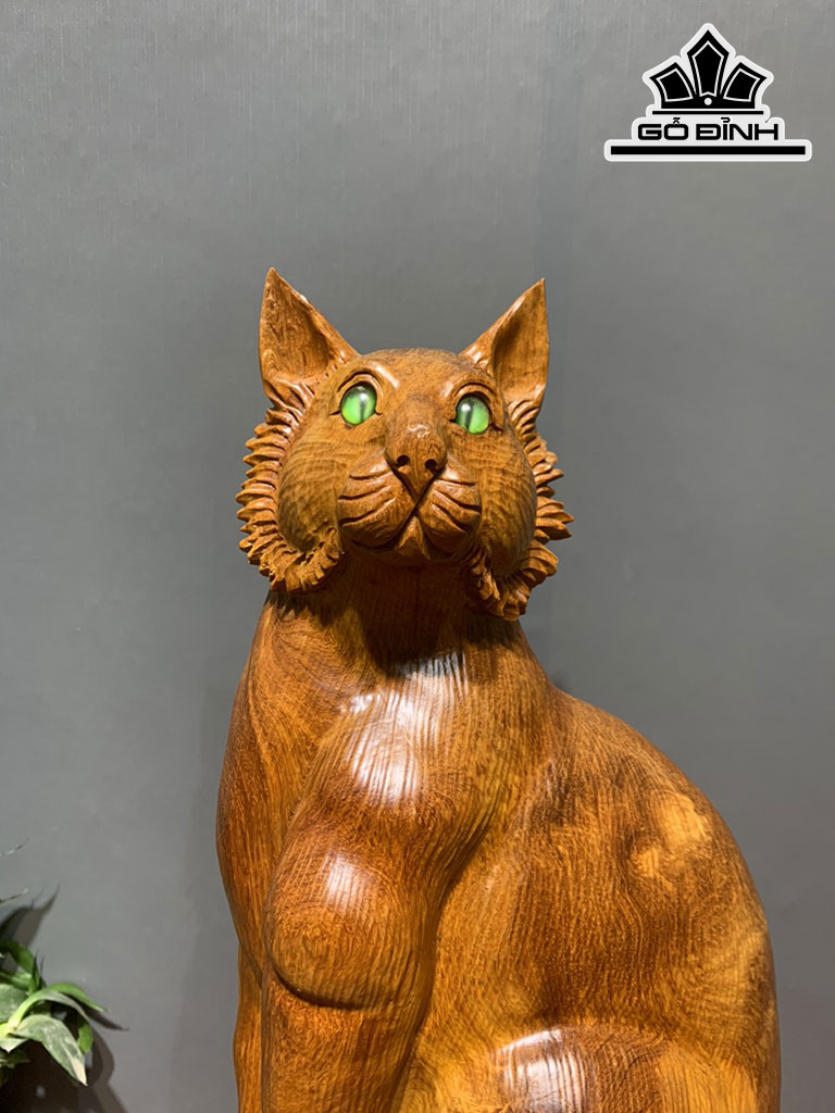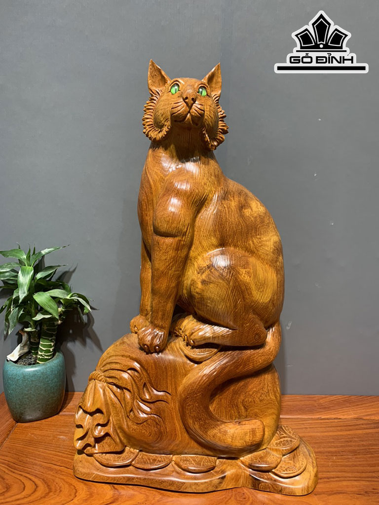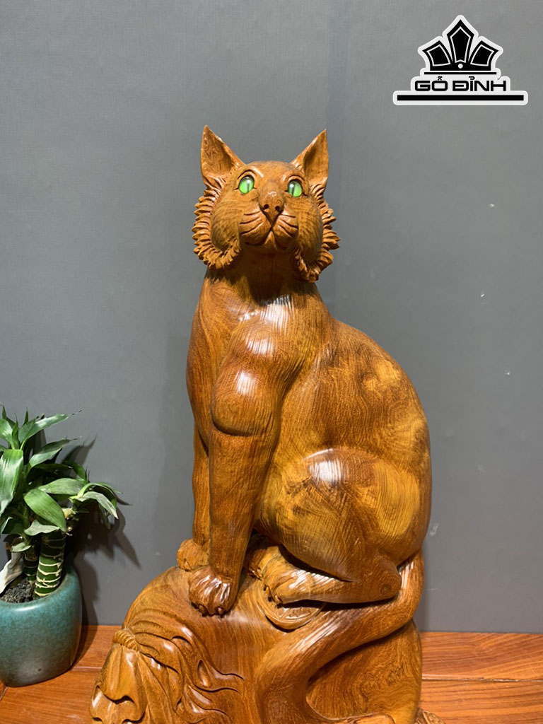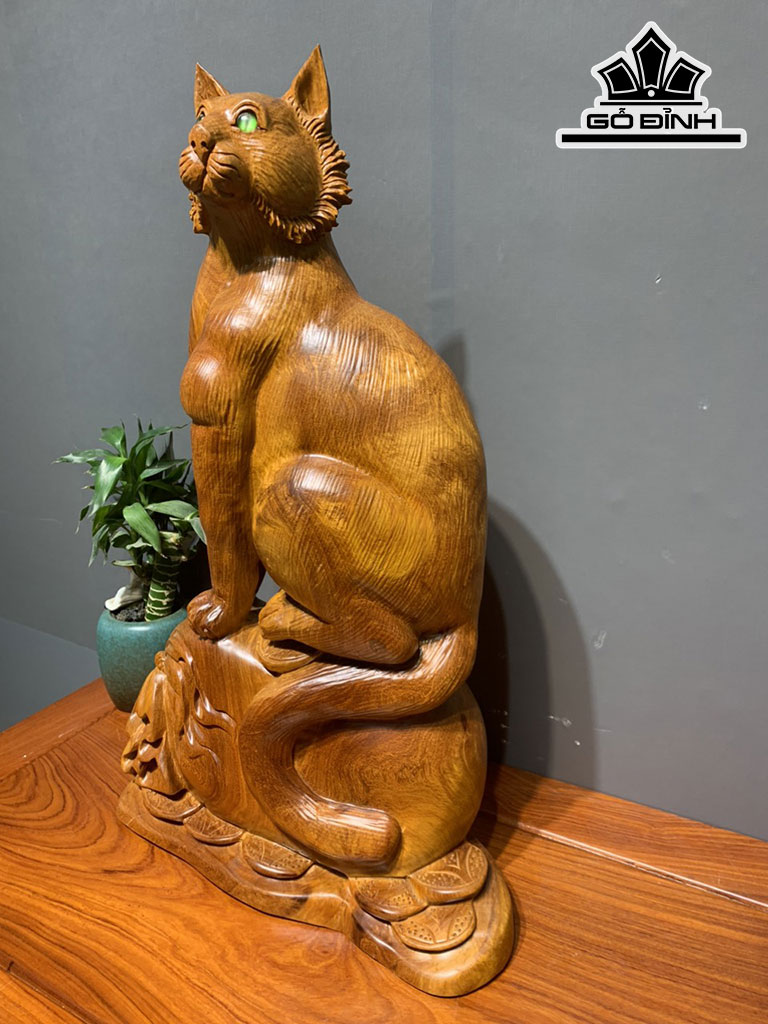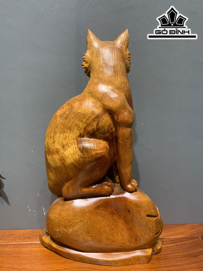 Tượng Mèo Gỗ Hương Cao 52 Ngang 32 Sâu 18 (cm)