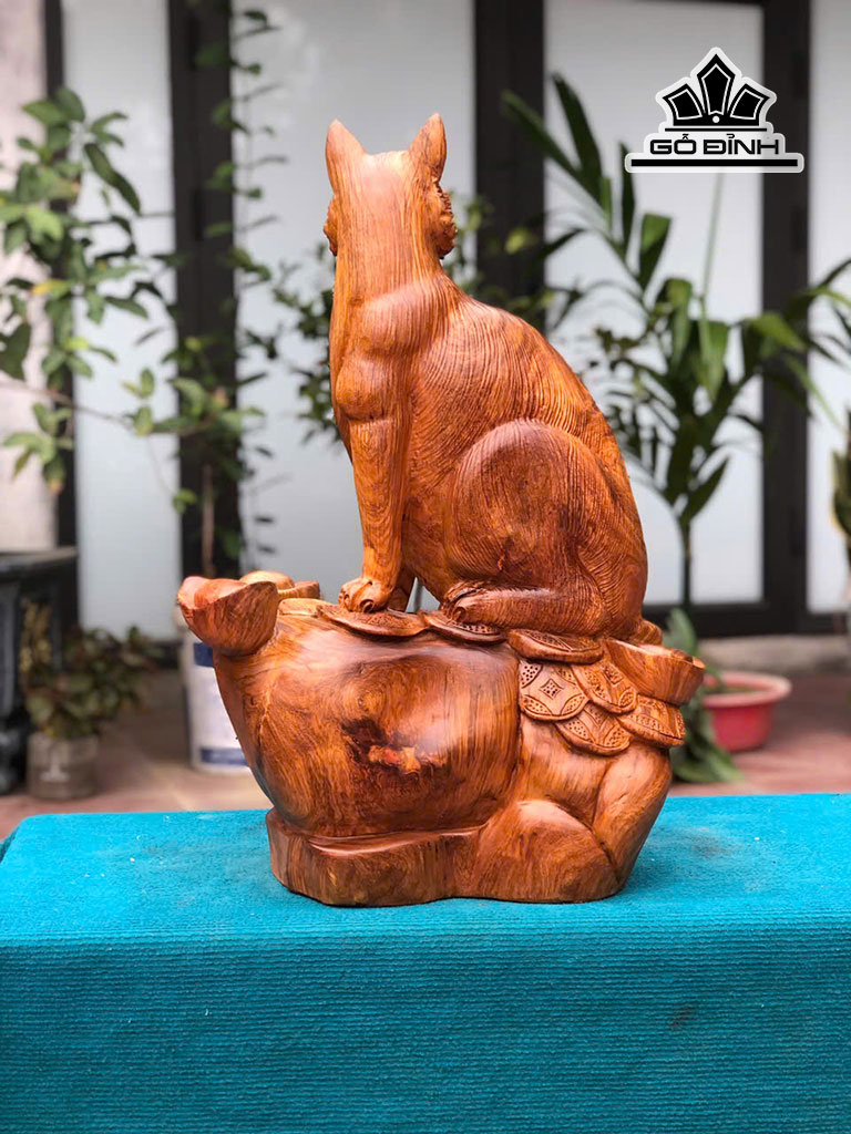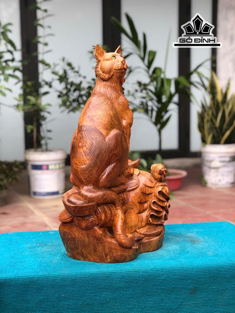 Tượng Mèo Gỗ Hương Cao 65 Ngang 45 Sâu 26 (cm)