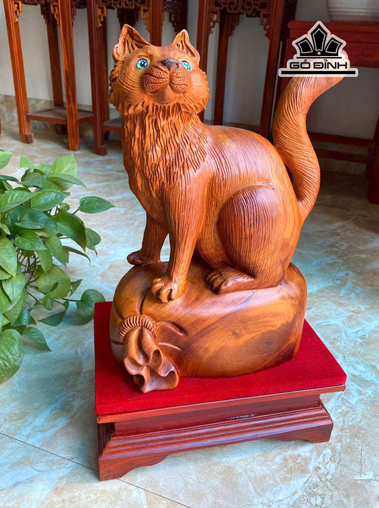Tượng Mèo Gỗ Hương Cao Cả Kỷ 50 Ngang 26 Sâu 15 (cm)