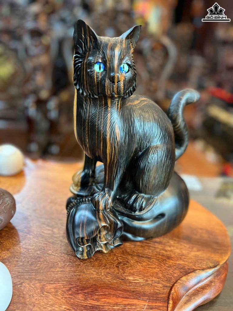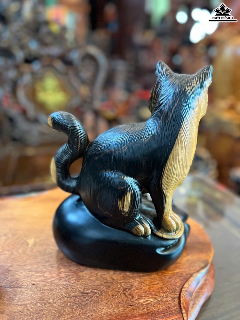 Tượng Mèo Gỗ Mun Hoa Cao 27 Ngang 22 Sâu 12 (cm)