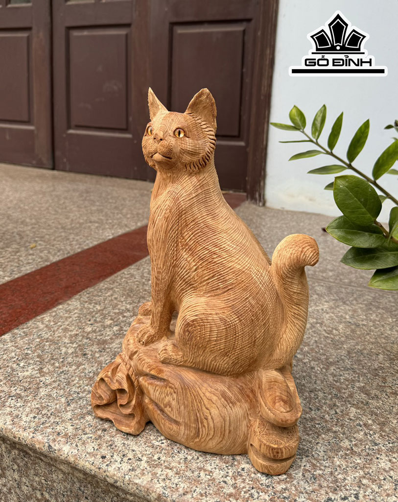 Tượng Mèo Gỗ Ngọc Am Cao 36 Ngang 22 Sâu 19 (cm)