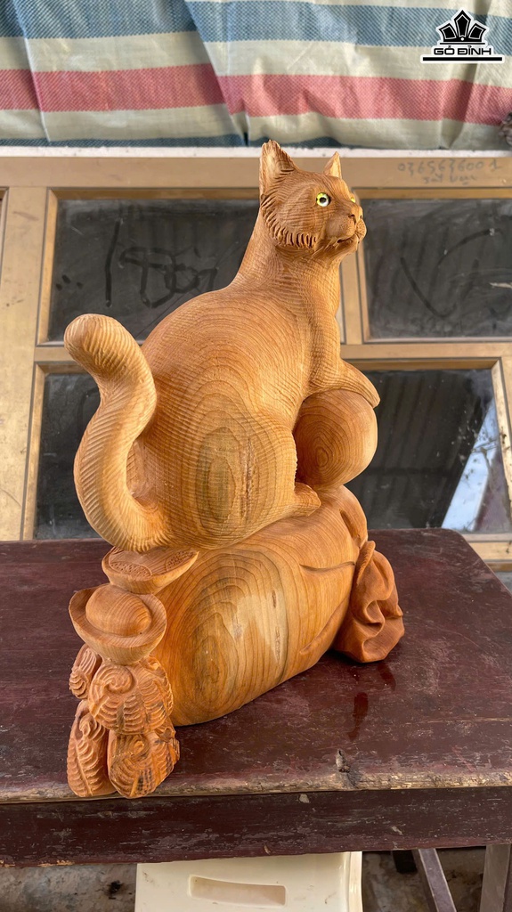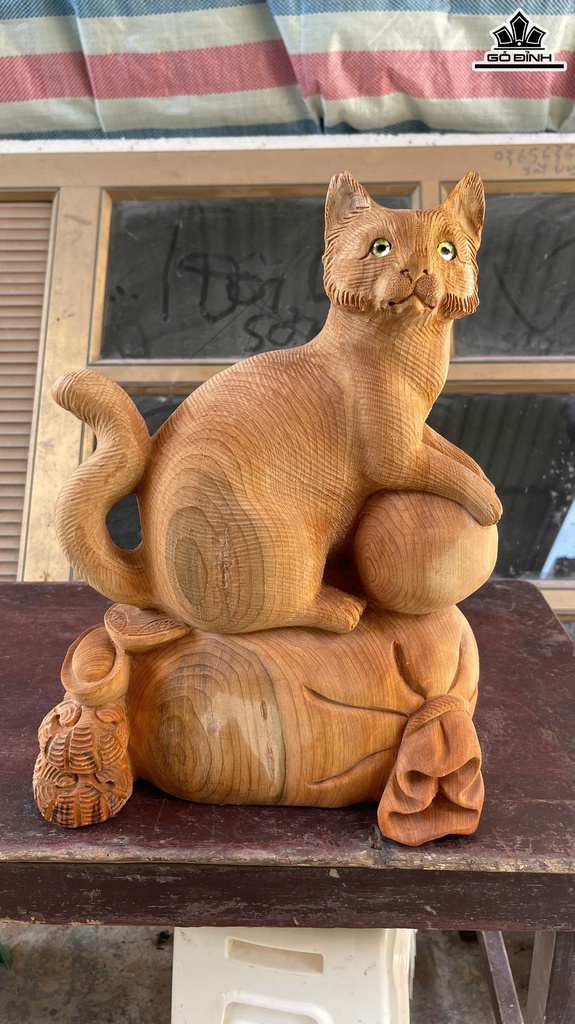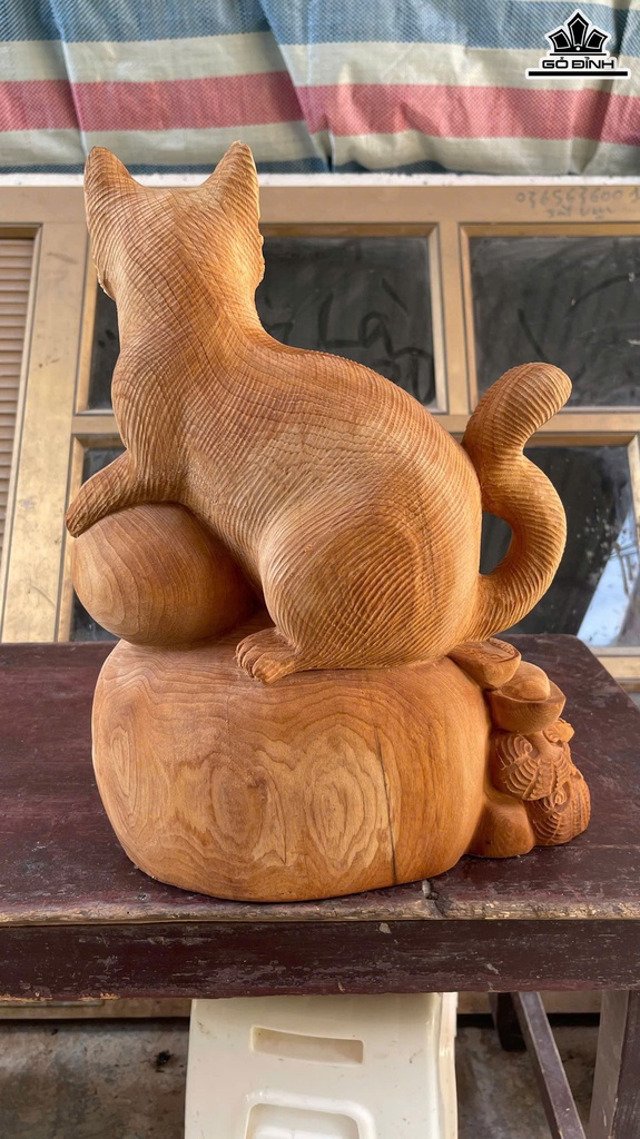 Tượng Mèo Gỗ Ngọc Am Cao 38 Ngang 30 Sâu 15 (cm)