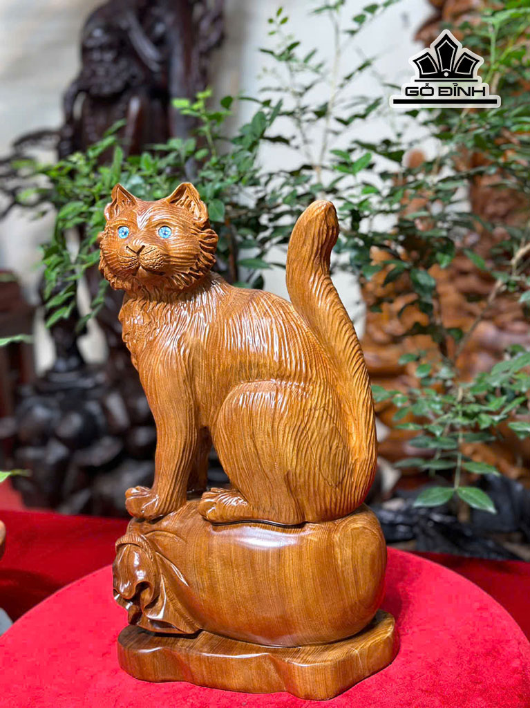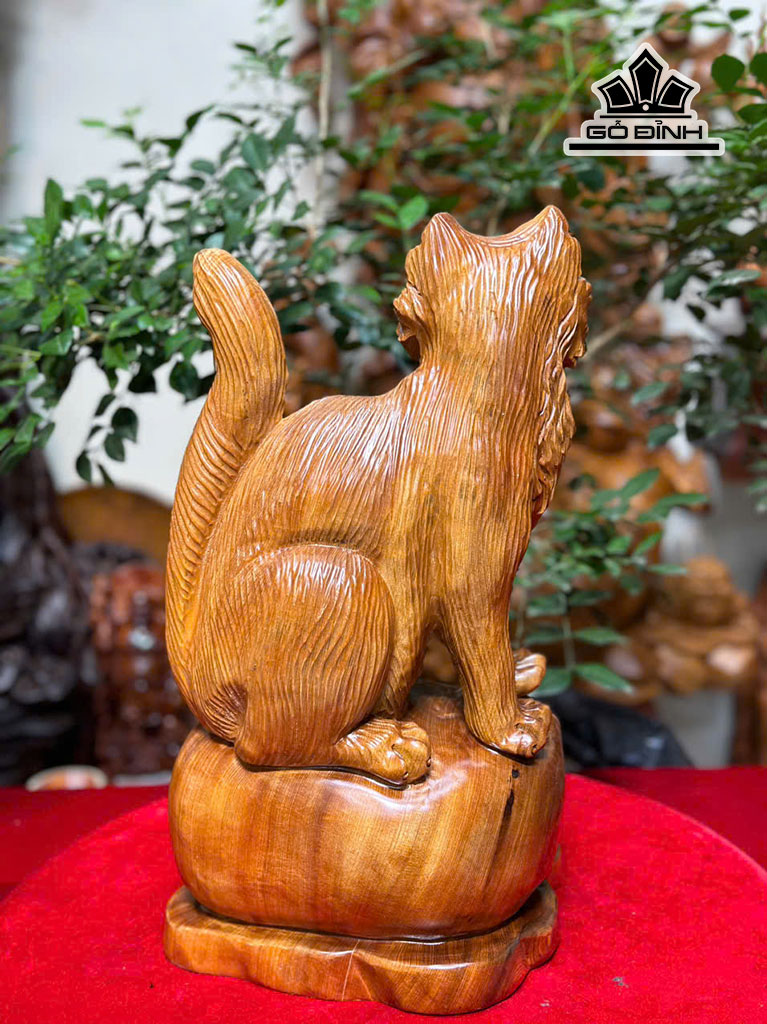 Tượng Mèo Gỗ Ngọc Am Cao 42 Ngang 23 Sâu 18 (cm)