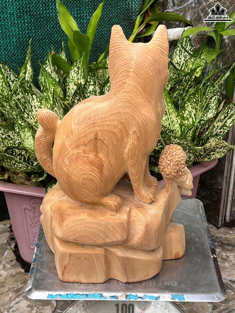 Tượng Mèo Gỗ Ngọc Am Cao 42 Ngang 28 Sâu 18 (cm)