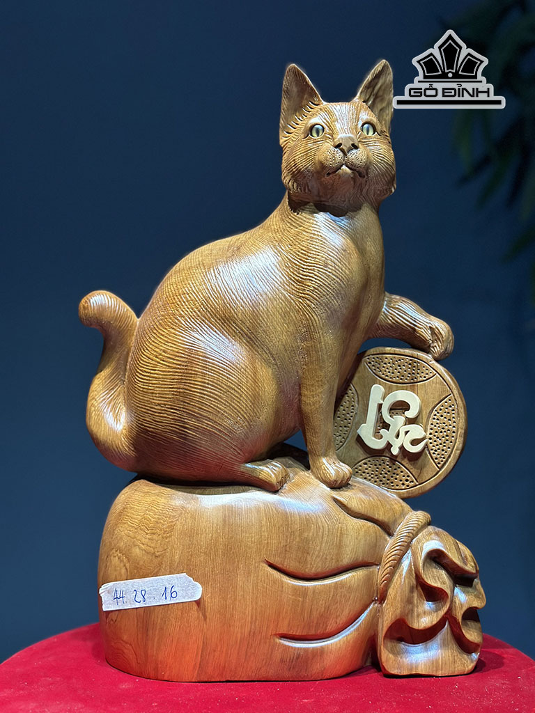 Tượng Mèo Gỗ Ngọc Am Cao 44 Ngang 28 Sâu 16 (cm)