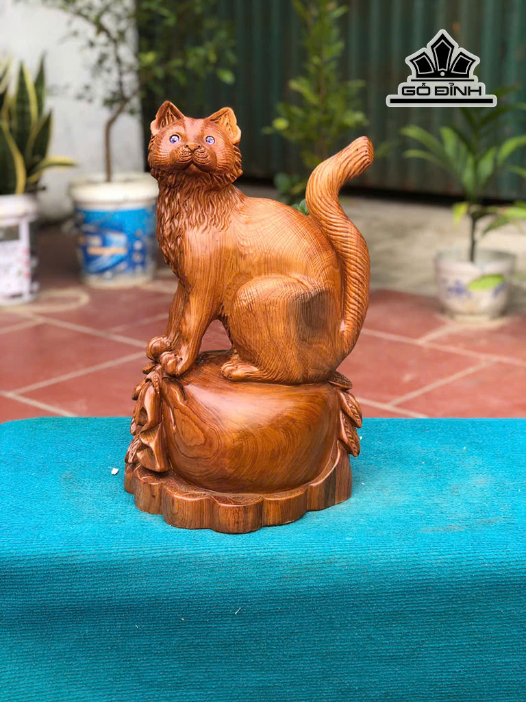 Tượng Mèo Gỗ Ngọc Am Cao 50 Ngang 33 Sâu 2 (cm)