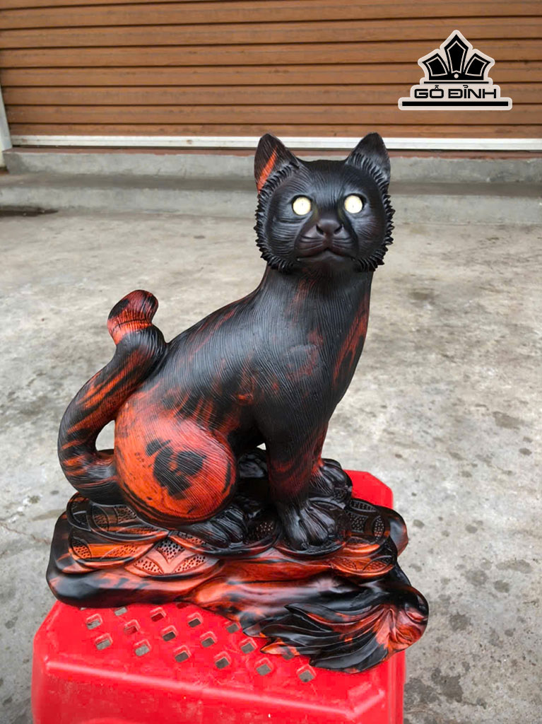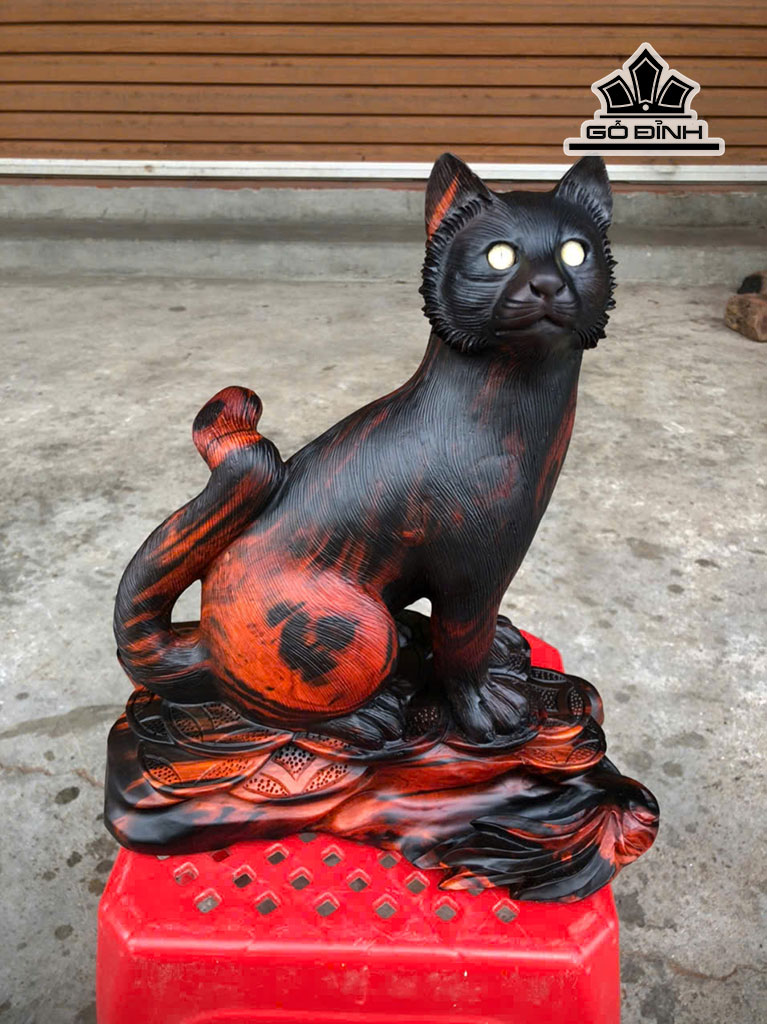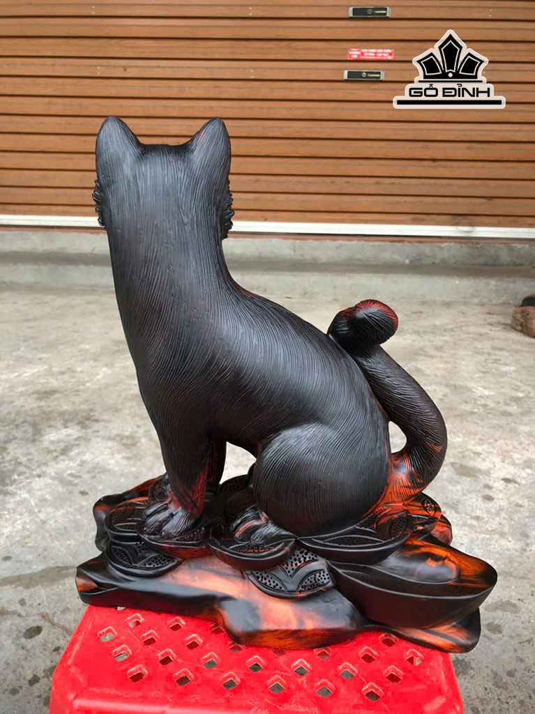 Tượng Mèo Gỗ Trắc Cao 31 Ngang 27 Sâu 14 (cm)