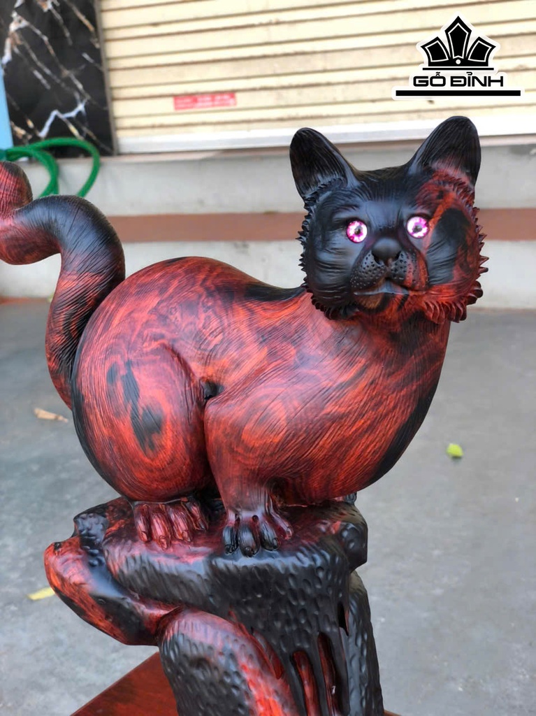 Tượng Mèo Gỗ Trắc Cao 34 Ngang 31 Sâu 11 (cm) - Cao Cả Kỷ 38 (cm)