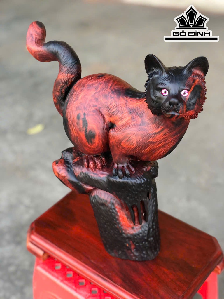 Tượng Mèo Gỗ Trắc Cao 34 Ngang 31 Sâu 11 (cm) - Cao Cả Kỷ 38 (cm)