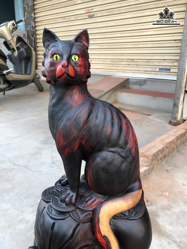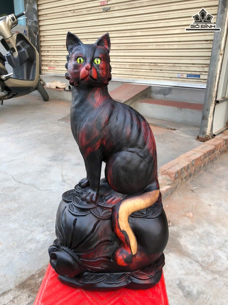 Tượng Mèo Gỗ Trắc Cao 44 Ngang 24 Sâu 17 (cm)