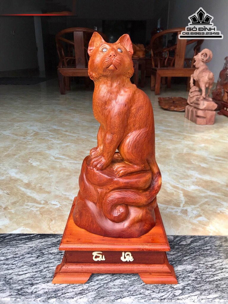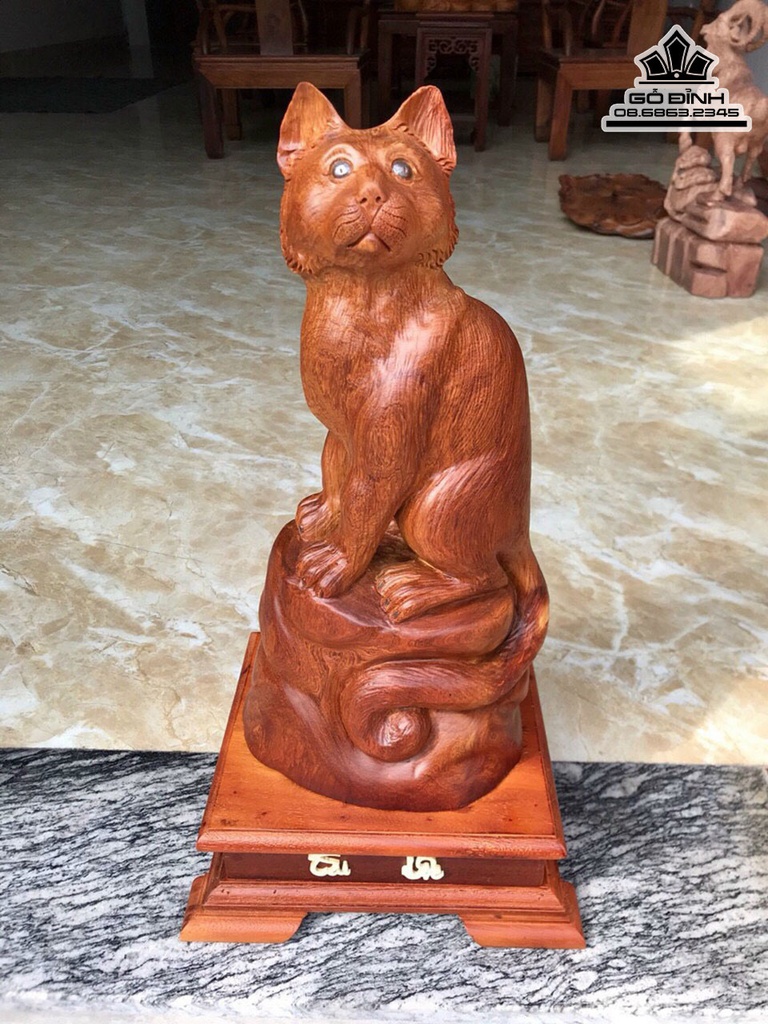 Tượng Mèo Phong Thủy Gỗ Hương Việt Cao Cả Kỷ 54 Ngang 20 Sâu 16 (cm)