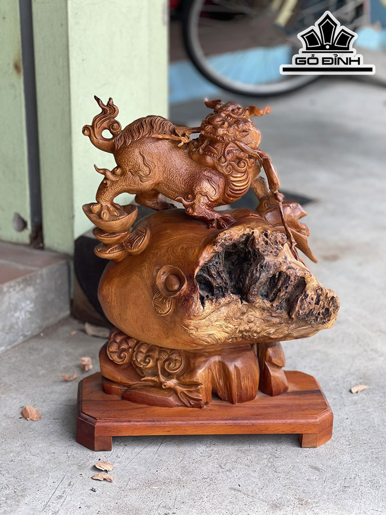 Tượng Nghê Đứng Bao Tiền Gỗ Hương Cao 45 Ngang 34 Sâu 19 (cm)