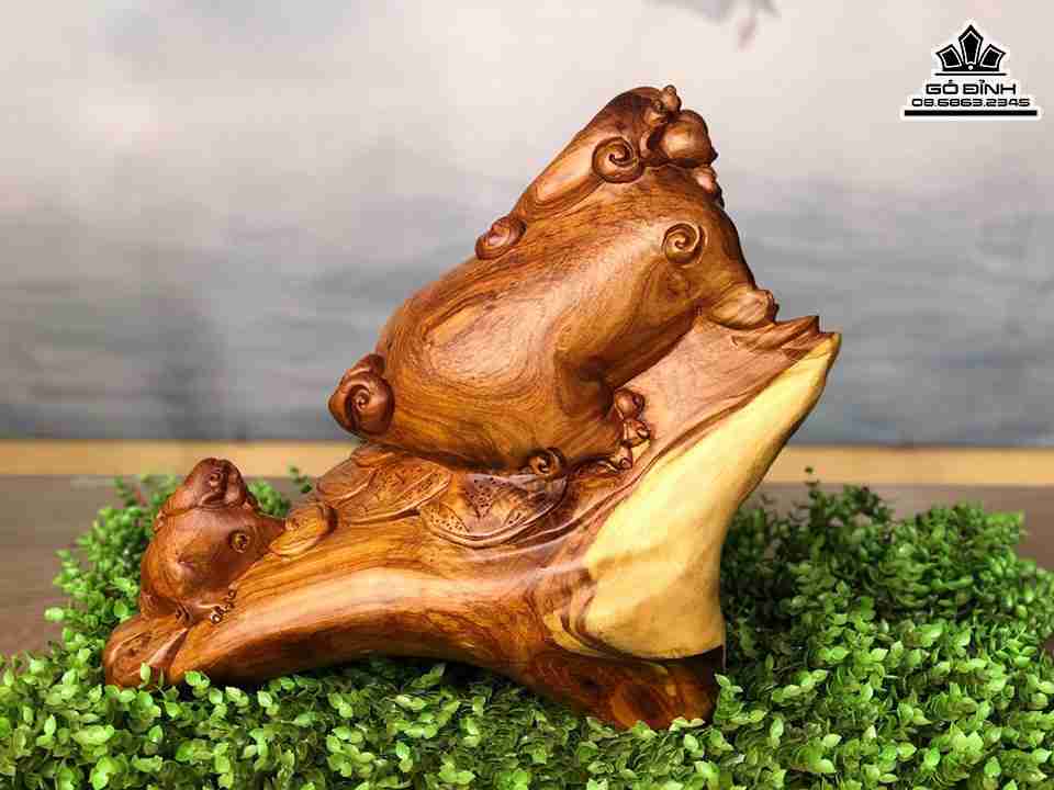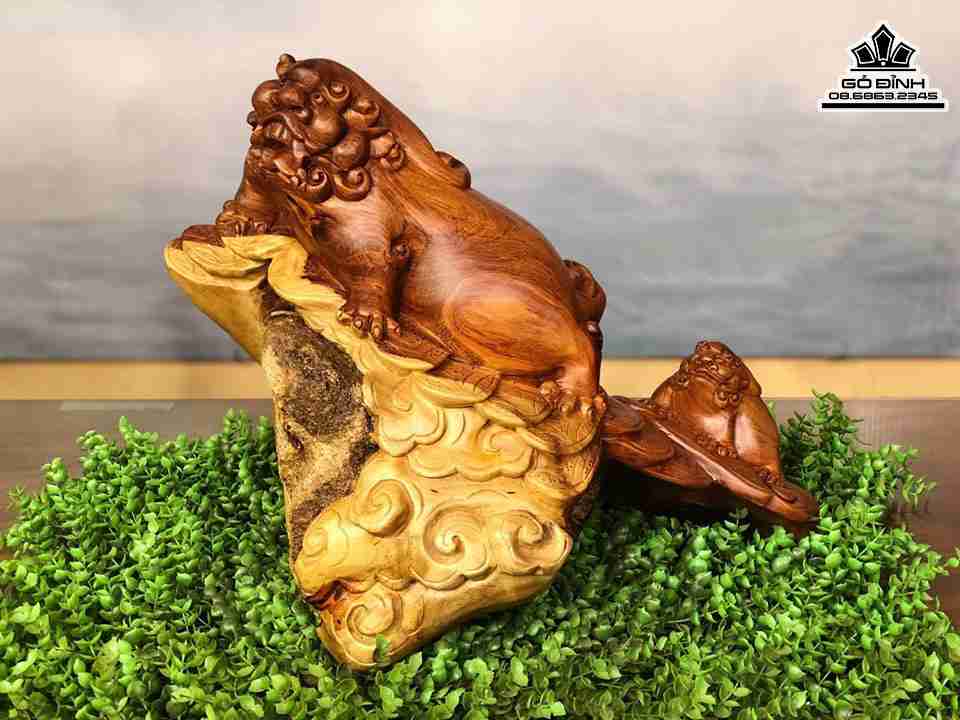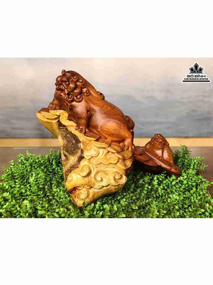 Tượng Nghê Gỗ Hương Cao 38 Rộng 48 Dày 23 (cm)