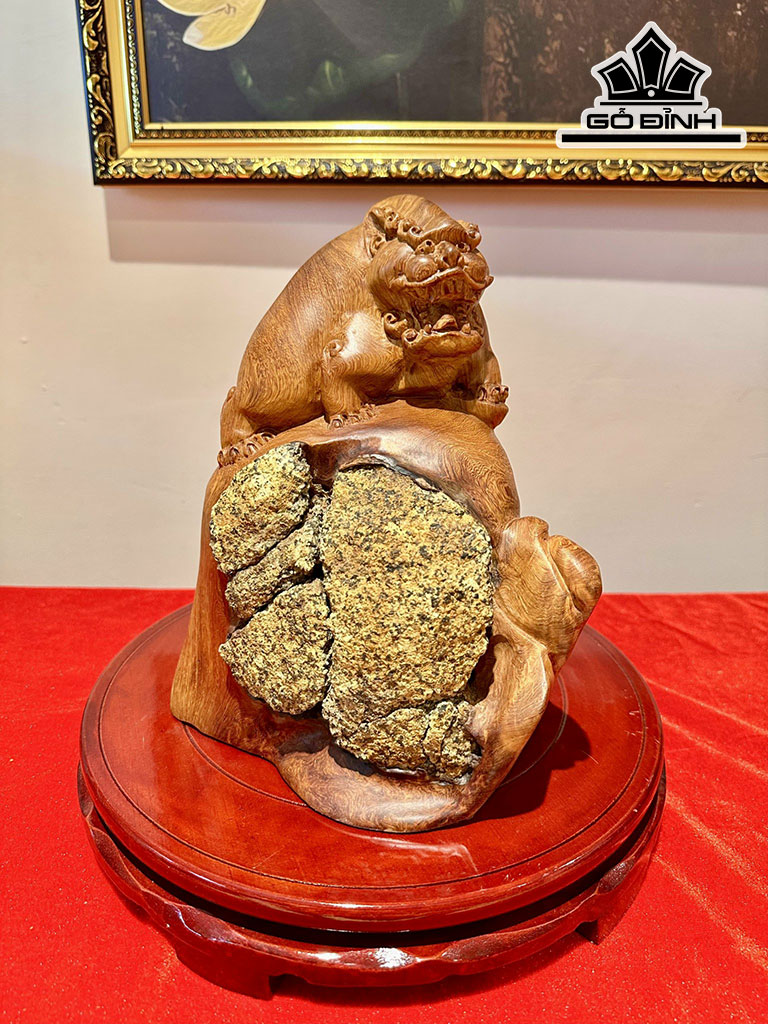 Tượng Nghê Gỗ Hương Cao 25 Ngang 20 Sâu 15 (cm)
