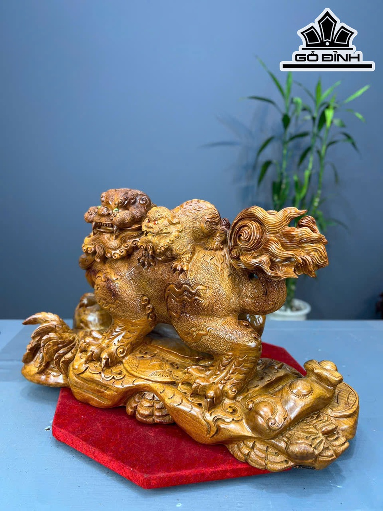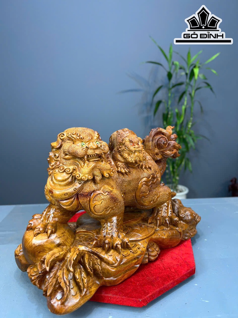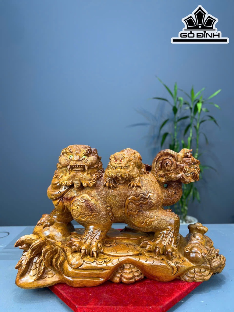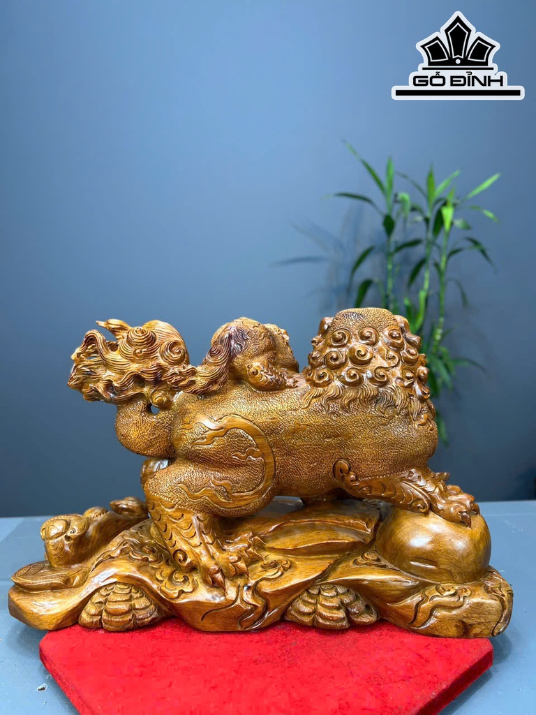 Tượng Nghê Gỗ Hương Cao 35 Ngang 55 Sâu 25 (cm)