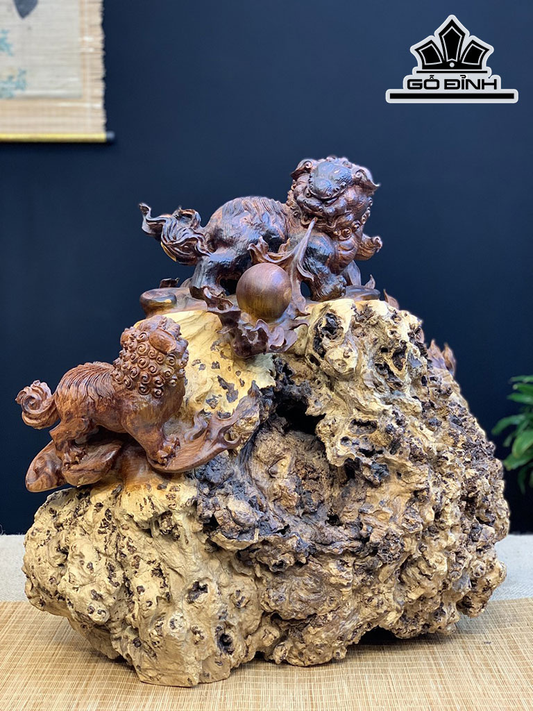 Tượng Nghê Gỗ Nu Cẩm Cao 50 Ngang 55 Sâu 30 (cm)