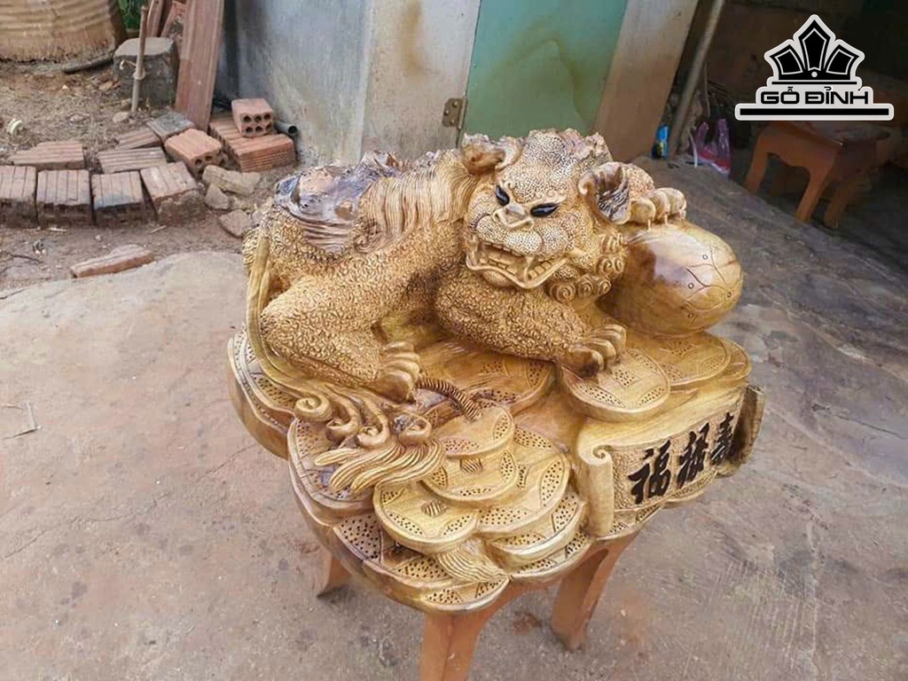 Tượng Nghê Gỗ Nu Kháo Ngang 55 Cao 45 Sâu 32 (cm)