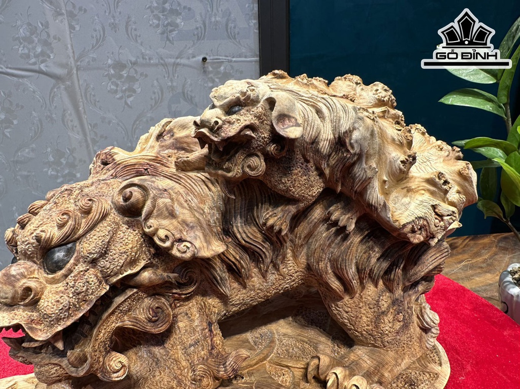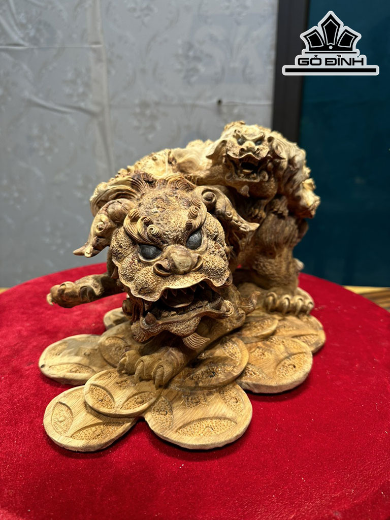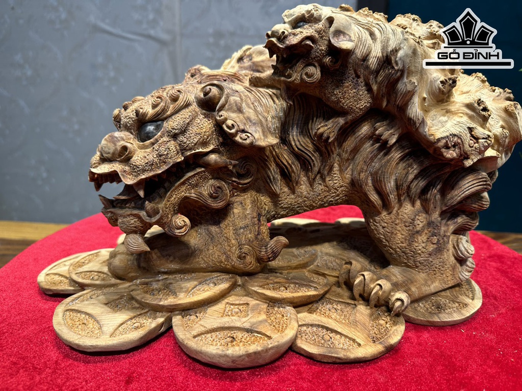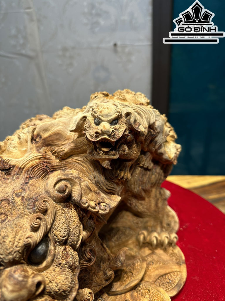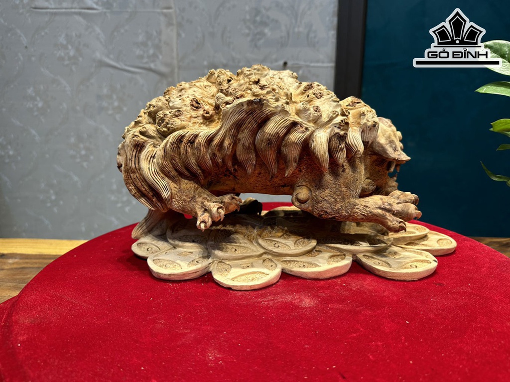 Tượng Nghê Gỗ Nu Ngọc Am Cao 21 Ngang 36 Sâu 23 (cm)