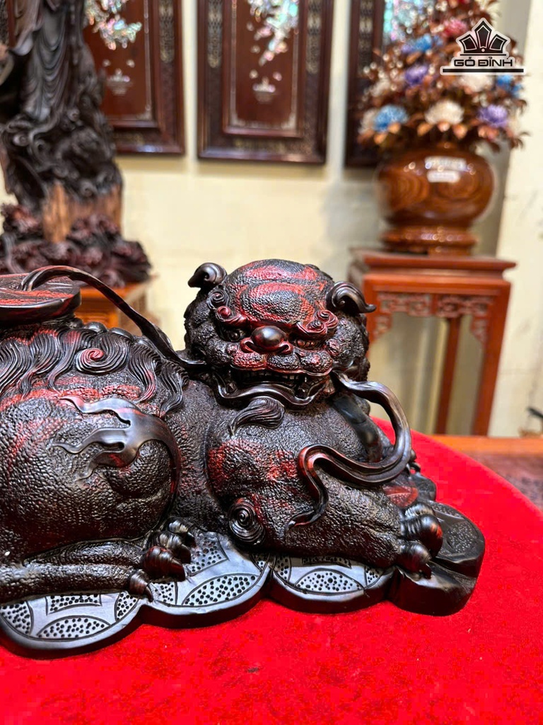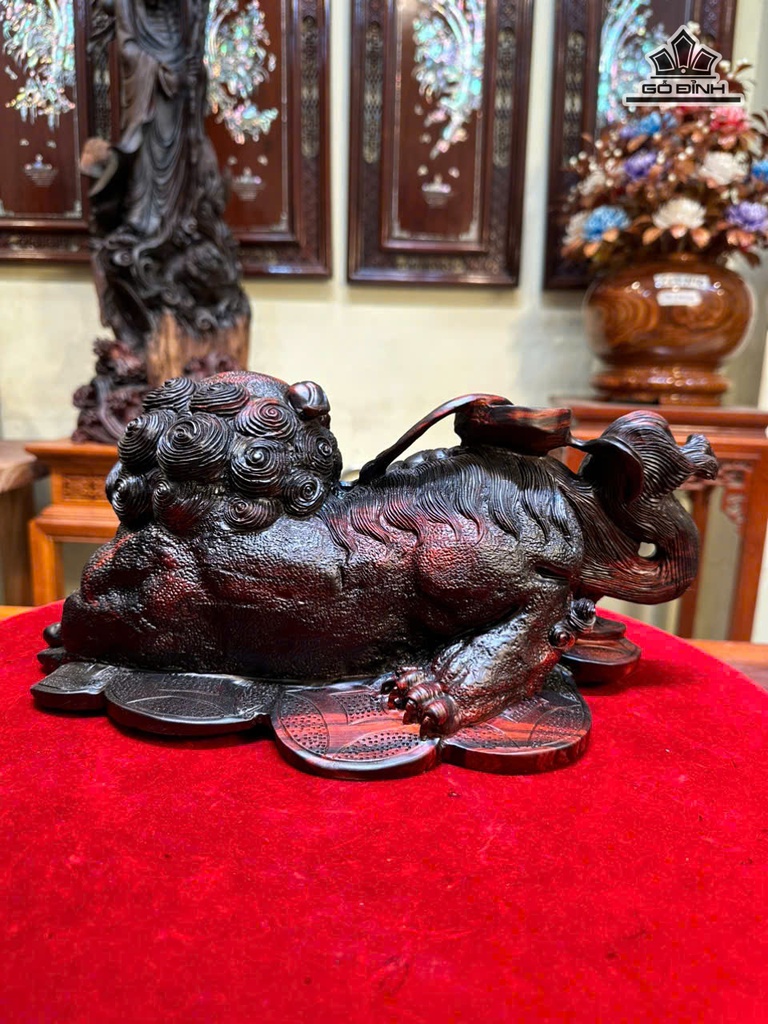 Tượng Nghê Gỗ Trắc Cao 15 Ngang 34 Sâu 19 (cm)