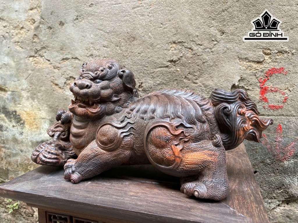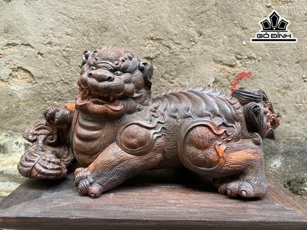 Tượng Nghê Gỗ Trắc Cao 35 Ngang 16,5 Sâu 14 (cm)
