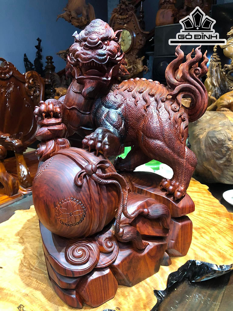 Tượng Nghê Tài Lộc Gỗ Trắc Cao 40 Ngang 30 Sâu 28 (cm)
