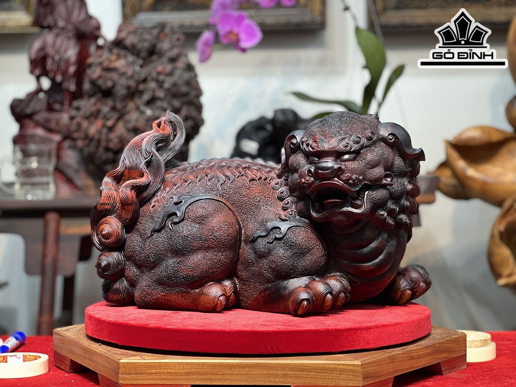 Tượng Nghê Xù Gỗ Trắc Cao 27 Ngang 46 Sâu 27 (cm)