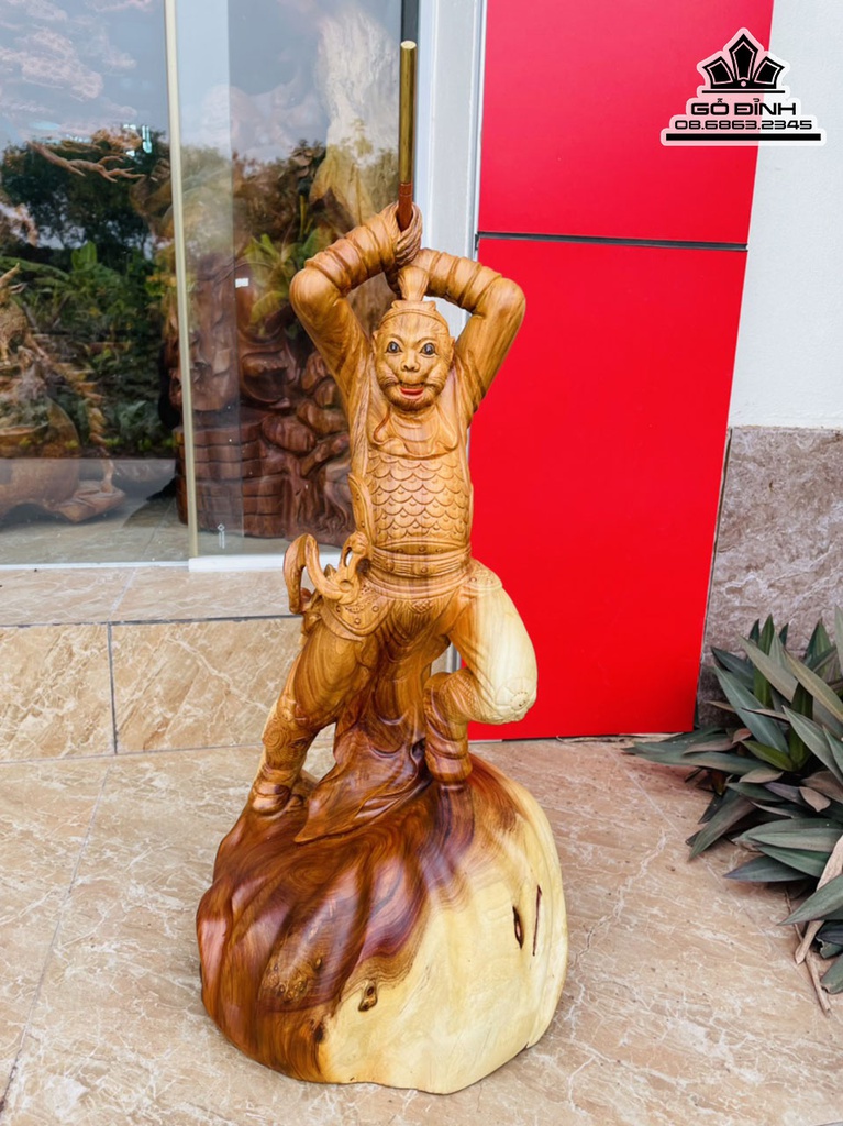 Tượng Ngộ Không Gỗ Hương Việt Cao 60 Ngang 30 Sâu 28 (cm)