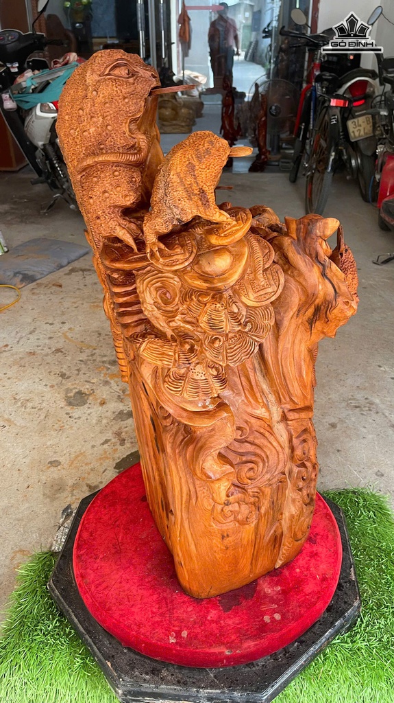 Tượng Ngũ Cóc Ngậm Tiền Gỗ Ngọc Am Cao 80 Ngang 38 Sâu 40 (cm)
